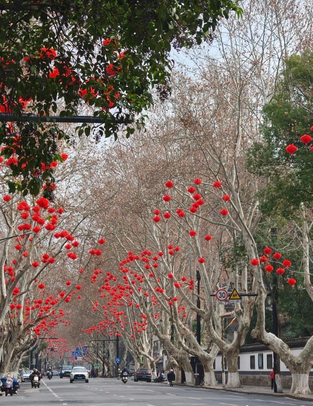 3万余盏红灯笼高高挂,8处景观小品扮靓街角……这几天,2026年绍兴市越城区春节氛围布置工作正有序推进,全城张灯结彩,营造出浓浓的年味。 2月2日 城南大道 一批工作人员正在忙碌 有的把灯笼打开 再组成一串 有的爬上梯子 往路灯杆上悬挂红灯笼 “每根路灯上挂一杆(组)绸布灯笼,每杆6只。从远处看,场面壮观,年味十足。”一名工作人员说。 据了解,为配合2026“祝福·绍兴古城过大年”活动,彰显新春新气象,围绕“节约、喜庆、集约”原则,越城区开展春节氛围布置工作,具体包括灯笼装饰布置和景观小品布置,其中装饰灯笼布置包括绸布灯笼、PE灯笼和纸灯笼等。 越城区综合行政执法局有关人士介绍,绸布灯笼布置点位分布在主城区(古城区)、镜湖新区、高新区和市黄酒集团等区域的主要路段,涉及40多条主干道以及新河弄历史街区。其中,高新区阳明路和涂山路等路段,重复利用去年的PE灯笼,约有1800盏。今年,所有路段累计悬挂5061杆,共有3万余盏绸布和PE灯笼。 此外,延安路(环城东路—解放路)两侧梧桐树高大挺拔,今年将在258棵梧桐树上挂满纸灯笼,轻盈的灯笼随风摇曳,喜庆氛围“拉满格”。 “延安路的梧桐树总能给人惊喜,夏日枝叶茂盛,满地光影斑驳;冬日满树红火灯笼,瞬间有了过年的模样,这就是属于绍兴的过年仪式感吧!”有市民感慨。 高高挂起的红灯笼点亮城市上空,城市街角同样需要装扮。 据了解,此次在主城区中兴路与胜利路口西南侧(宋梅桥公园)、高新区阳明北路与延安路交叉口东侧(生态广场)、镜湖新区本觉路与横湖路交叉口西南侧等8处人流量较大的街角,布置不同风格和造型的景观小品。 目前,春节氛围布置工作整体即将完成,并一直保存至元宵节后才会予以拆除。