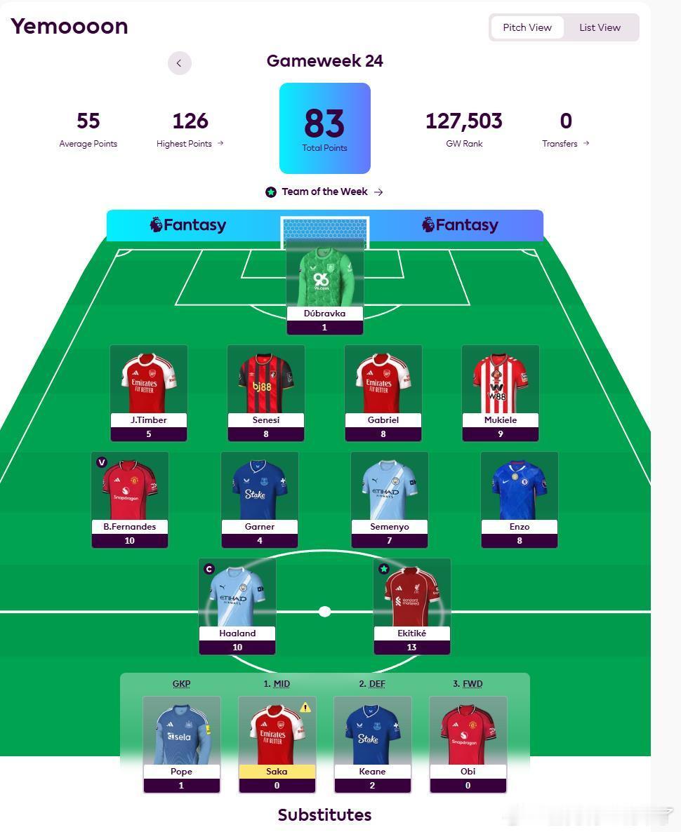他本轮持有埃基蒂克,B费,C了哈兰德,当然也有恩佐,赛梅约这样的砍分人物
