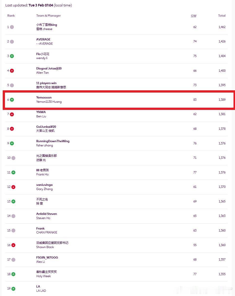 本轮小香范特西联赛的冠军是 Yemoooon ,在众多82分的情况下,拿到了83分夺得本轮的冠军