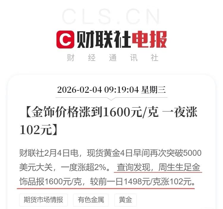 周生生金饰价涨至1600元 有买才有卖,需求创造市场,它敢涨说明除了大盘因素外还是有不少需求饰品的,你看房子过剩了还涨的起来了吗?
