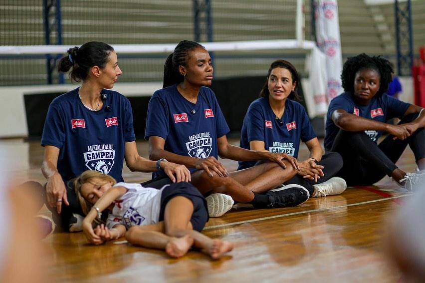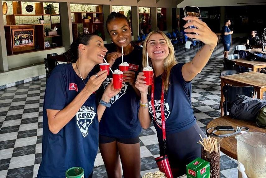 【谢拉+法比亚娜合体出席活动】 巴西女排名将谢拉+法比亚娜 合体现身排球推广活动 也是巴西排球官方咖啡赞助商的公关活动 两人保养的不错 没太见老