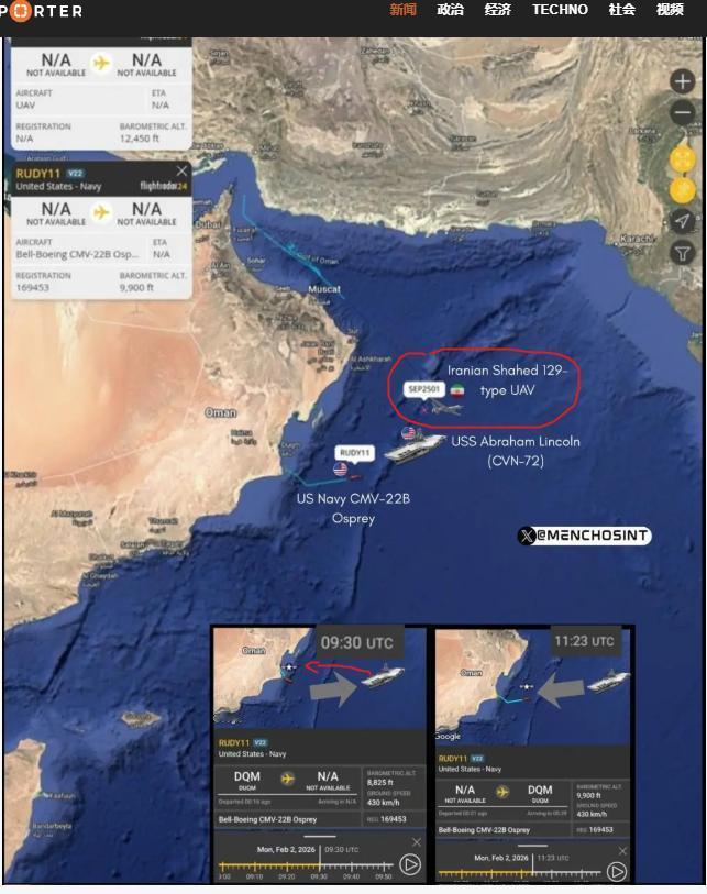 俄媒称前几天阿拉伯海域的美国航母编队意外被伊朗无人机发现并持续跟踪,最终美军起飞F-35击落这架无人机,航母也返回阿曼附近 根据俄媒消息,莫斯科时间20:20美军击落了一架接近航母的伊朗无人机。随后美军声称这架 无人机过分“接近”航母编队,美军出于安全考虑击落。 而航母编队并没有停止,2月2日晚航母及其护航舰距离伊朗海岸超过700公里,一天后,距离又拉得更远了(参看附图)。 俄媒称航母编队突然撤离,应该是试图脱离伊朗反舰导弹(ASM)的射程。而这架无人机则是发现航母编队后持续跟踪监控航空母舰及其伴随舰艇,为伊朗沿海反舰导弹提供位置信息。 在此之前,航母很早就关闭AIS信息隐藏了位置信息,航母编队应该是在该海域进行演练时被无人机发现,美军出于安全考虑撤离了威胁区域。 据报道,这架跟踪航母编队的无人机是伊朗侦察与打击型中空无人机沙赫德129,飞行时间长达24小时。 在此之前,这架无人机经常在空中值勤,例如,1月27日被发现在波斯湾执行某种任务。 这一幕追逐画面也反映了目前美军与伊朗军事实力对比,即伊朗在导弹、无人机 领域具有自身优势,有一定的反击能力。 据报道伊朗目前至少有2-3000枚导弹,其中不乏射程超2000公里的导弹导弹,此外伊朗还服役超高音速的先进导弹,突防能力极强。 另外伊朗无人机也是伊朗另一个杀手锏,而具有强大产能。 此前乌克兰就指责伊朗援助俄罗斯无人机,前几天有伊朗媒体报道伊朗一天之内服役1000架无人机。 美国对此心知肚明,航母一旦被定位,尽早撤离。 目前伊朗对无人机被击落还没有进一步回应。