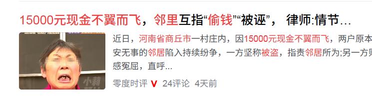 现实版,疑人偷斧?河南商丘,大娘的邻居家丢了15000块钱,怀疑是大娘家偷的,一直骂了她两个星期,大娘觉得冤枉,指着邻居说:你冤枉我,骂我,咱俩不能算完。邻居跳脚回道:我奉陪到底!明明我钱藏的地方,连儿女都不知道,可自从钱丢了,你两口子见我都躲着走。 15000元的红票子。这可不是小数目,是这家人省吃俭用攒下来给儿子娶媳妇的“彩礼钱”,也就是老百姓口中的“救命钱”。为了守住这笔财富,女主人可谓绞尽脑汁。她选了一个极为刁钻的藏匿点,隐秘到什么程度?连她的亲生闺女和儿子都被蒙在鼓里。 变故发生在她外出采摘花生的那个空档。前后不过短短一晌午,钱就凭空蒸发了。现场留给警方的线索少得可怜,同时也极具误导性:监控录像是一片令人绝望的空白,没有任何可疑面孔入镜。唯独在那把椅子上,一枚孤零零的女性脚印,成了全案唯一的物理哑谜。 丢钱的人急红了眼,这种焦虑迅速寻找着宣泄口。很快,目光锁定了住在隔壁、年过六旬的周大娘夫妇。 这不是毫无来由的疯咬。逻辑链条看似严丝合缝:周大娘平日里常来串门,对邻居家格局了如指掌,具备“作案条件”。 而更让邻居深信不疑的,是案发后隔壁那个男人的反应。周大娘的老伴儿是个典型的老实巴交的农民,性格内向,甚至有些木讷。自从出了事,这老汉见着邻居就绕道走,头都不敢抬。 在行为心理学上,这本是老实人怕惹麻烦的“避险本能”。在那位丢失钱财的邻居看来,这一情形被精确解读为“做贼心虚”的确凿证据,不容置疑,仿佛已板上钉钉。 于是,一场长达两周的“乡村舆论战”爆发了。邻居没有等待警方的传唤,而是选择了最原始的私骂街。从村口骂到巷尾,整整十四天,高分贝的羞辱像高压水枪一样喷向周大娘一家。这种攻势的目的很明确:利用熟人社会的唾沫星子,逼对方崩溃认罪。 周大娘确实崩溃了,但不是认罪,而是反击。她深知在那张嘴面前辩解无力,于是做了一个决绝的举动:把媒体记者请进了村。 面对镜头,这位六十多岁的老人双手颤抖,几乎是歇斯底里地立下了封建式的毒誓:“如果是我偷的,我剁了这双手!” 这是农村老人维护尊严的最高规格,可以说是拿命在赌。她指着邻居质问:没有证据凭什么要把人往死里逼? 邻居的反应同样刚硬,指着对方鼻子回怼:“我奉陪到底!”在她看来,那枚脚印和老汉躲闪的眼神,就是不需要公证的“铁证”。 现在的局面异常尴尬。警方已经介入,但在没有监控实锤、没有目击证人的情况下,这成了一个典型的“零口供”僵局。 这让人不由得想起那个“疑邻盗斧”的古老寓言。网友们也在议论,这会不会是又一起家庭内部的乌龙? 毕竟,老人记忆错乱把钱藏忘了,或者家里其他人顺手牵羊的案例,在过往的新闻里比比皆是。 但无论真相最后指向哪里,这段邻里关系已经宣告“社会性死亡”了。 这里面还藏着一条被忽视的法律红线。邻居那两周的“公开处刑”,其实已经触碰了《治安管理处罚法》的边界。公然对他人进行侮辱,还于村中大肆宣扬,致使对方社会评价下滑,此等行径,从法律层面而言,已然构成名誉侵权。 换言之,纵使最终证实钱财确系周大娘所窃,邻居此番“骂大街”之举,亦极有可能需承担相应的法律责任。如果是一场误会,那面临的赔偿和道歉恐怕更沉重。