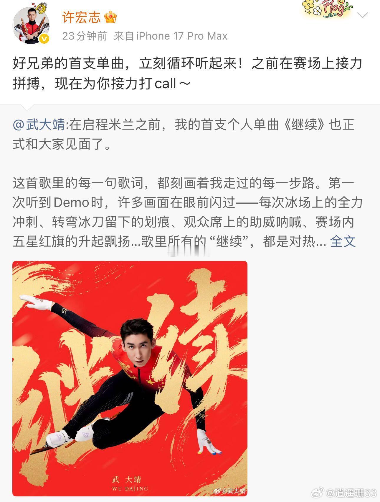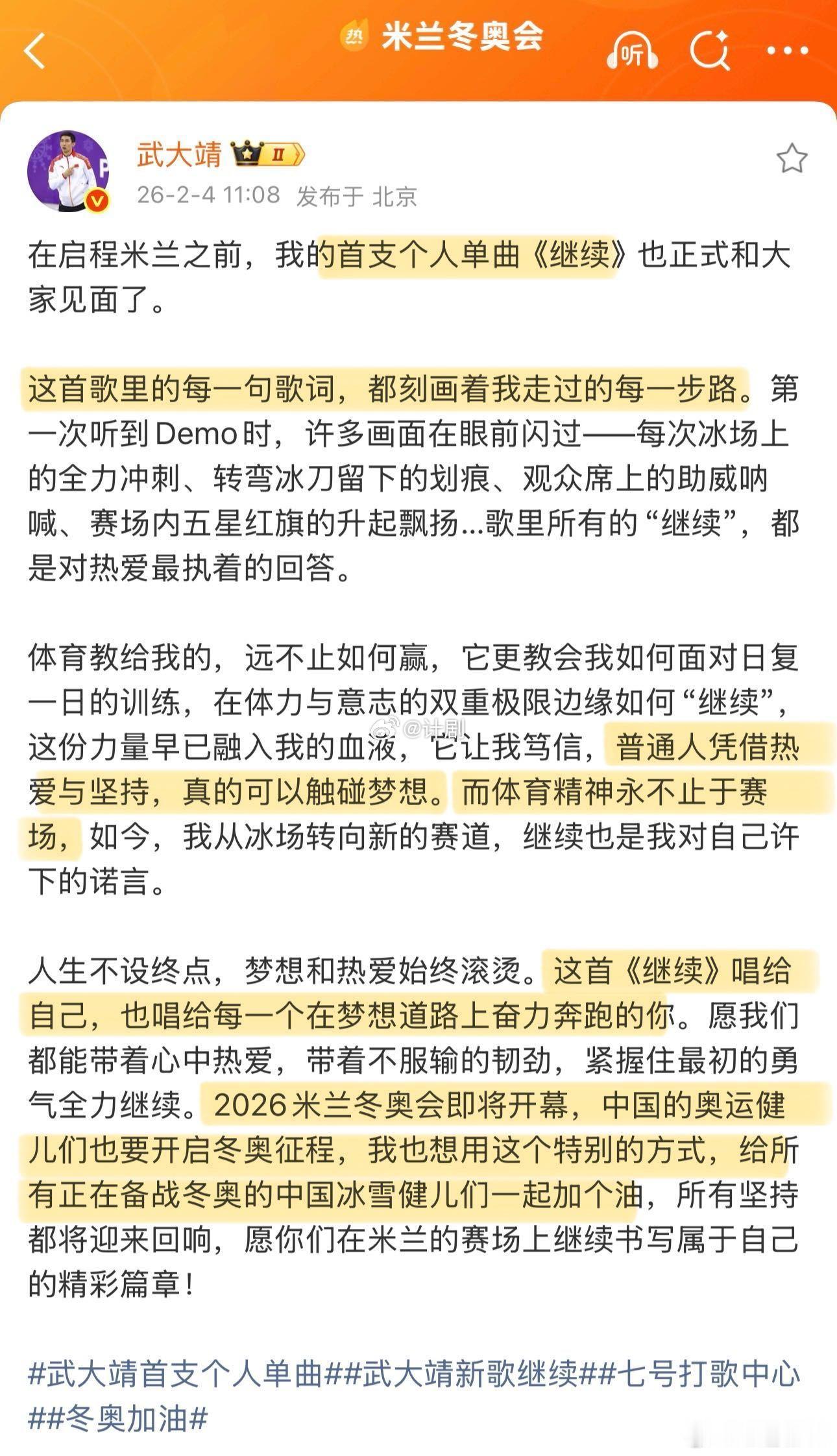 武大靖队友新歌评论区接力团建 看到评论区好多熟悉的名字来支持,这种体育圈的团建太暖了。从赛场到音乐,武大靖一直在传递正能量。