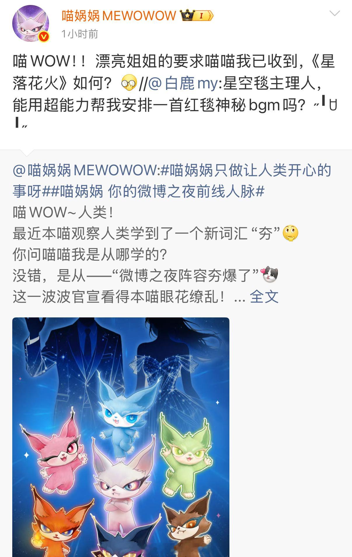 喵娲娲答应帮白鹿安排红毯bgm 星空毯主理人喵娲娲超给力!白鹿求红毯神秘BGM,直接答应安排,微博之夜名场面预定啦!