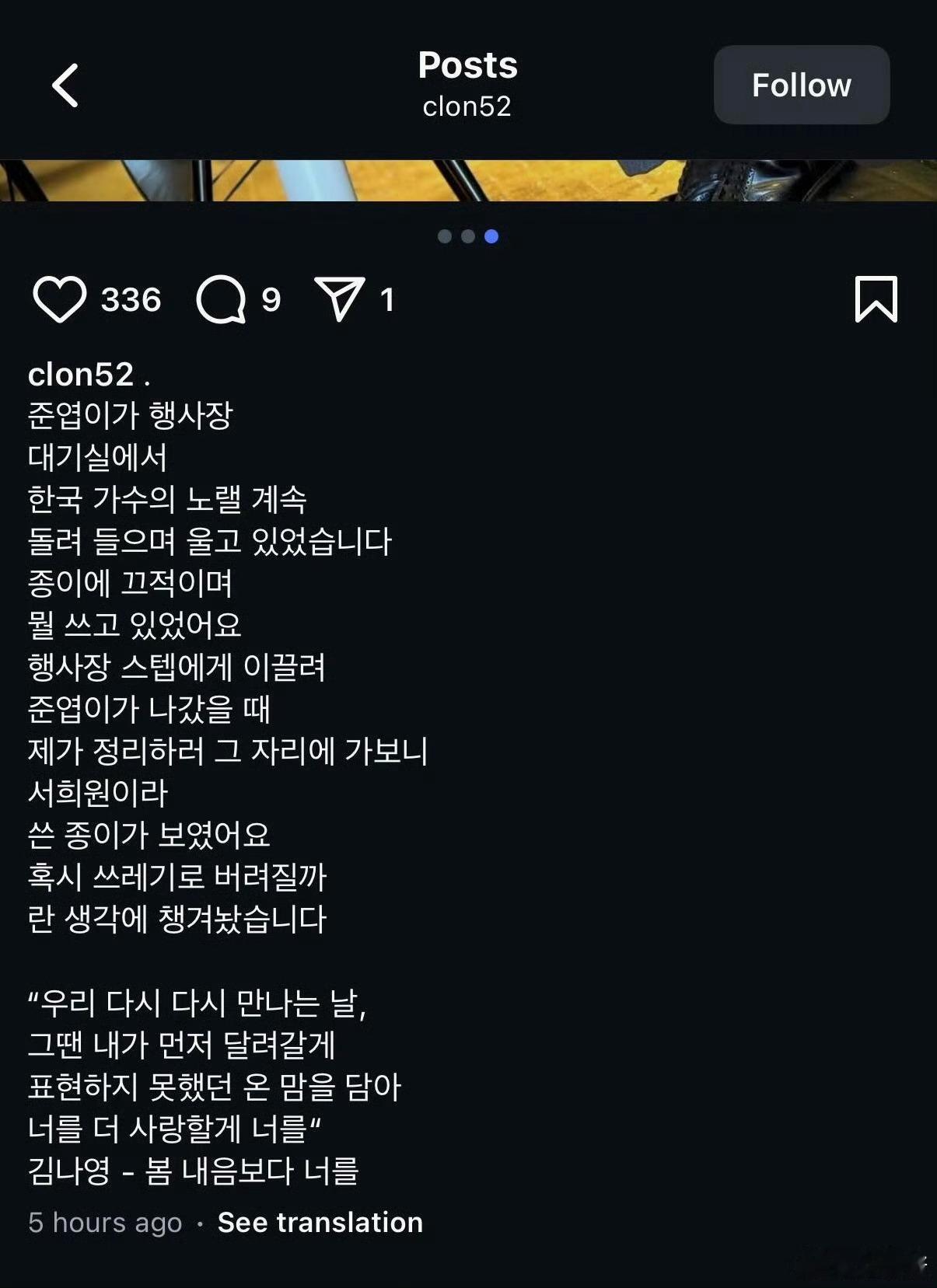 具俊晔队友发的ins说,在现场待机室里,具俊晔一直在听着韩国歌手的歌在哭,然后他发现具俊晔在写着什么,等具俊晔出去他收拾的时候发现了写着徐熙媛名字的纸具俊晔在纸巾写大S名字