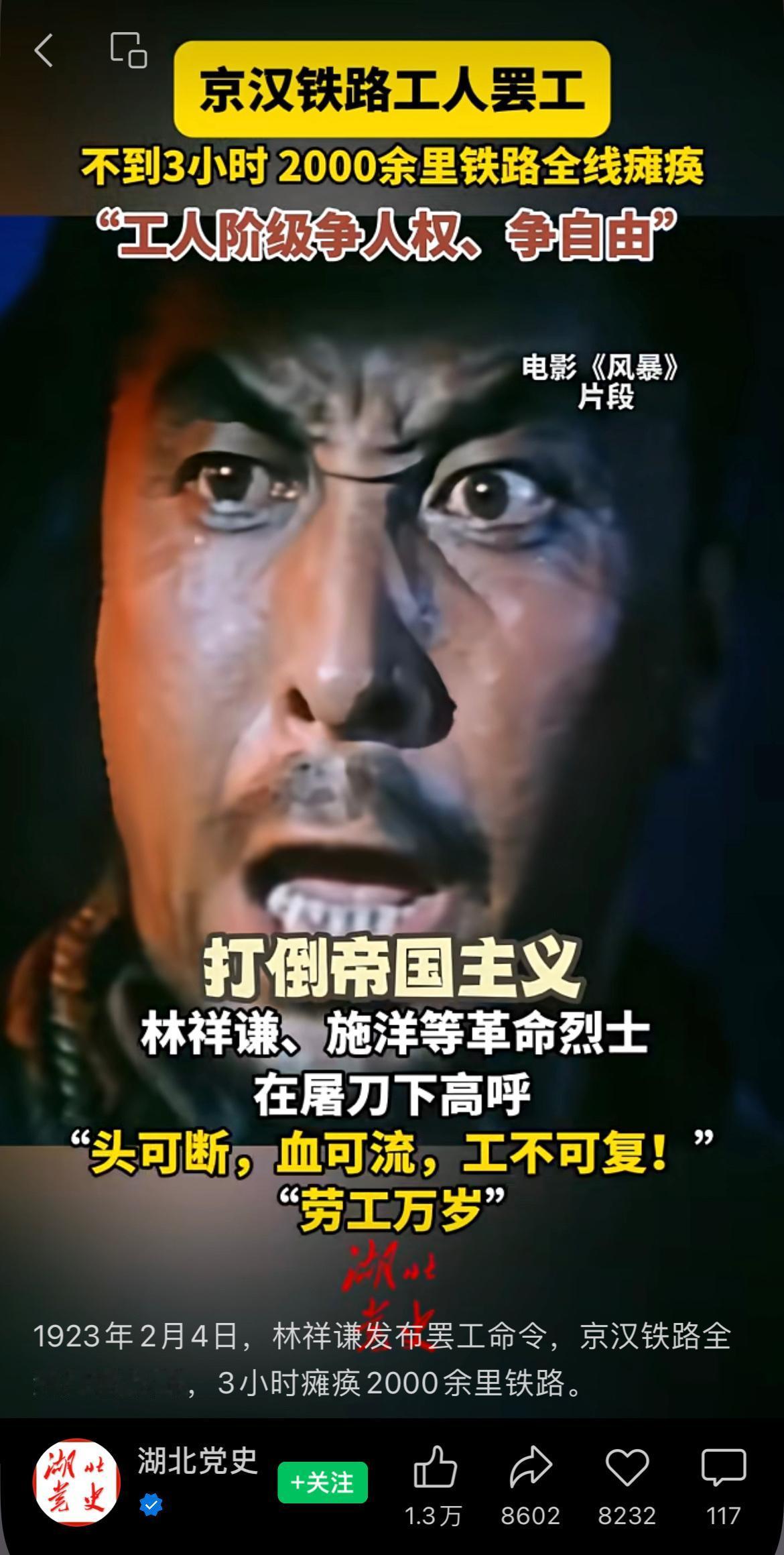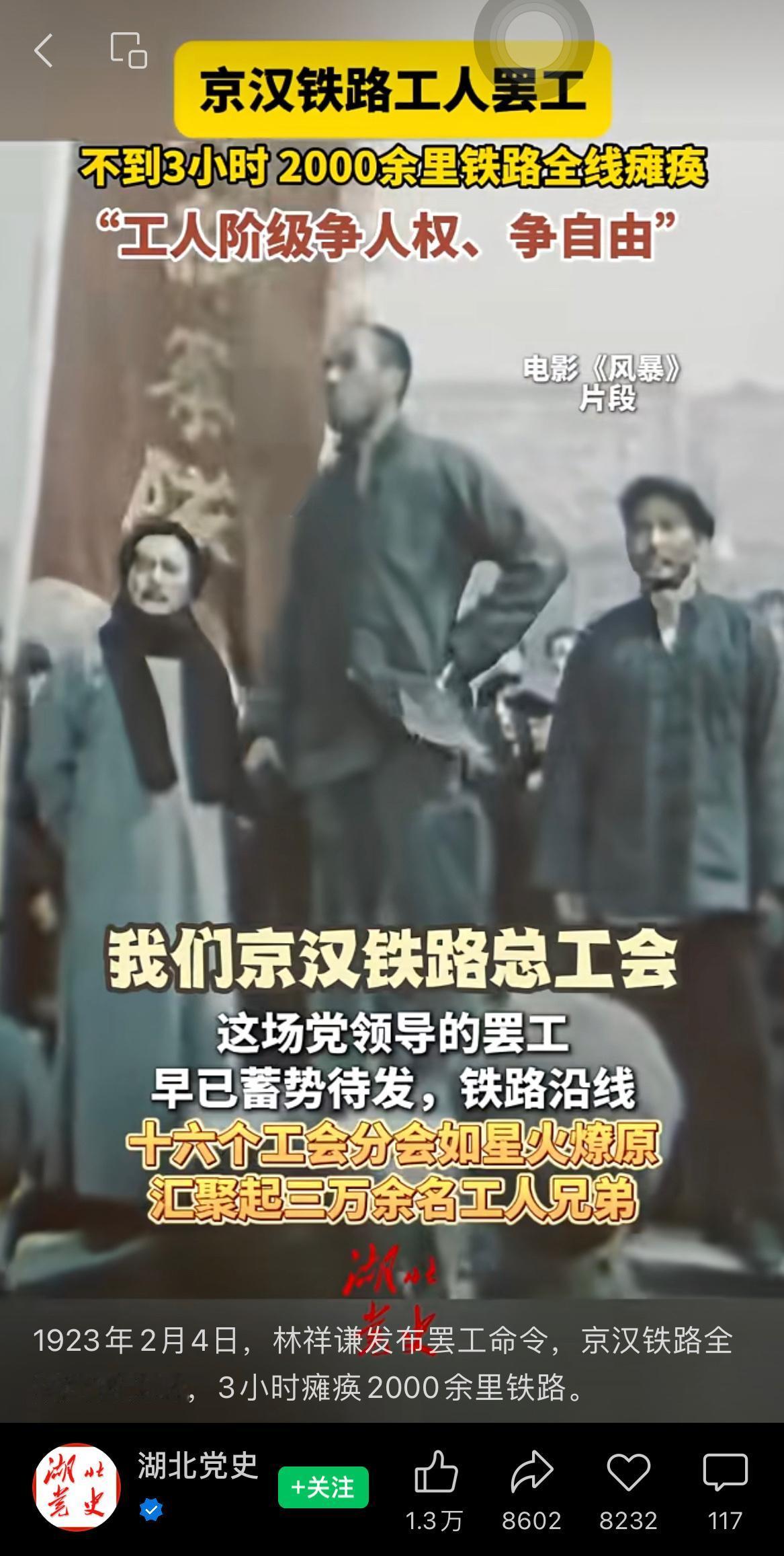历史上的今天:1923年2月4日,林祥谦发布罢工命令,京汉铁路全线汽笛长鸣,3小时瘫痪2000余里铁路。 历史上的今天 工人阶级