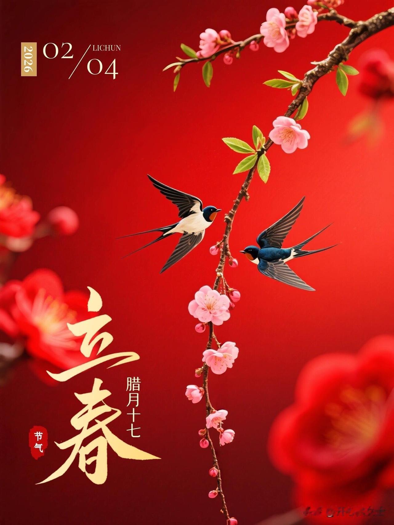 [一枕诗书·人日~立春] 文/开心吴 冬去冰溶又立春,红梅傲雪日日新 嫩芽萌动河边柳,紫燕南归寻旧间 柳眼初舒染嫩黄,东风拂羽燕归梁 寒梅渐隐余香在,己觉春声满画堂 缕缕东风拂旧尘,丝丝烟柳酿绿荫 翩翩飞来呢喃燕,叽叽喳喳咏春音 春日春山春水流,春天春草放春牛 春花开在春天里,春鸟落在春树头 东风又逢柳树梢,莺歌婉转闹春宵 冰河笑逐迎鸿雁,白发魔女玉手招 六九高歌立春头,柳枝扬眉舞不休 寒梅筹掿百娇艳,燕子高调住新楼