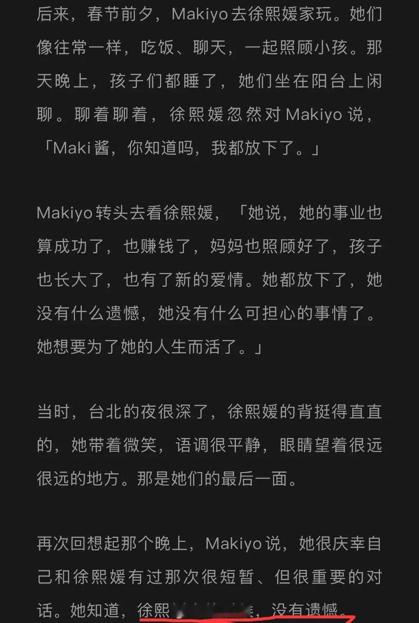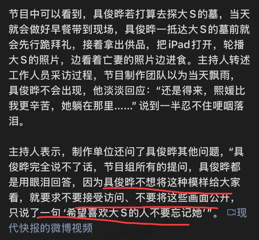 前几天的《人物》专访,还在说大S走的时候没有遗憾,人家就是为了让大家不扫兴,去的时候就不舒服,也陪着去了,还有两个孩子,你说人家没有遗憾,是你你有没有遗憾啦?