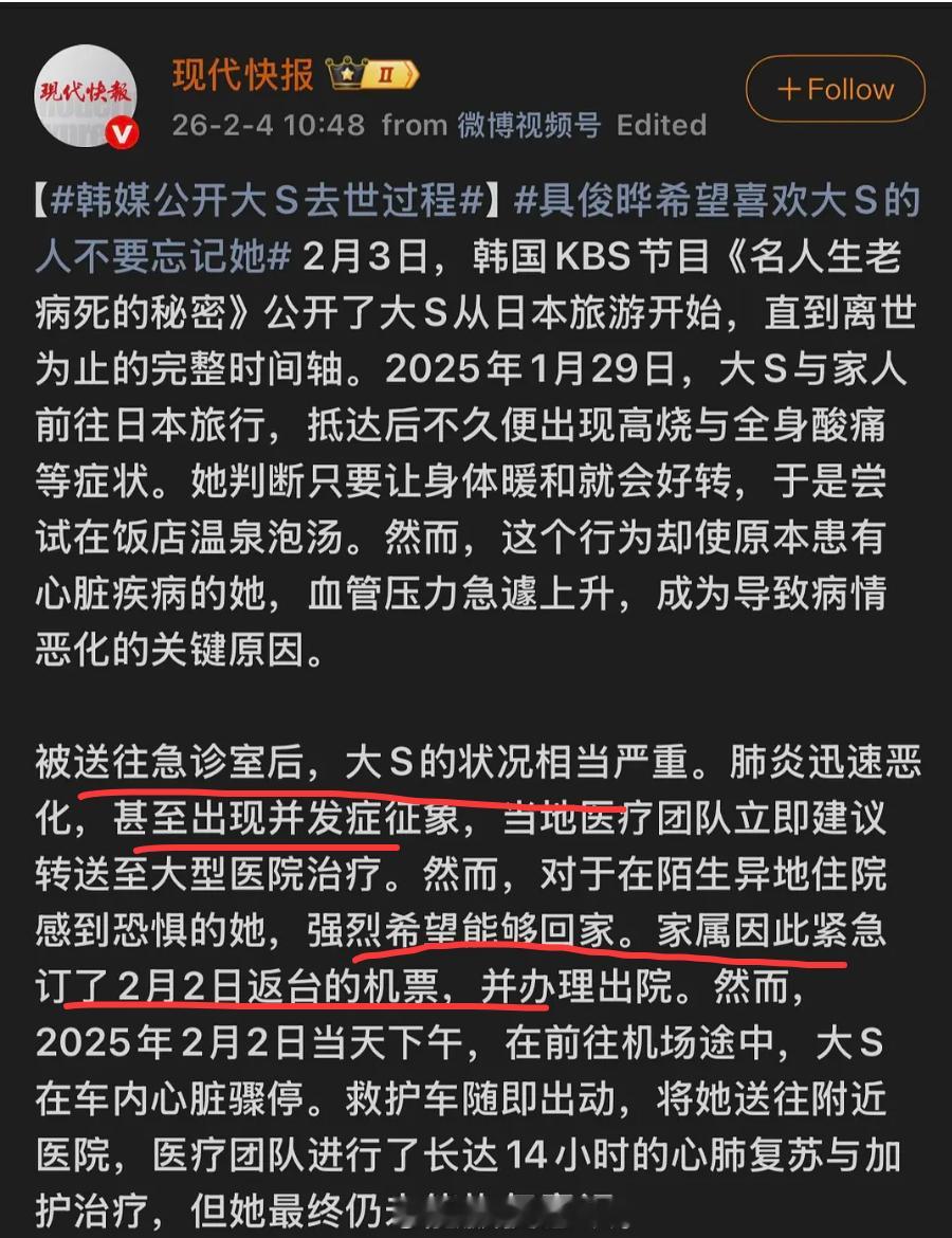 你们看大S去世时的细节采访么,韩国媒体公布的。