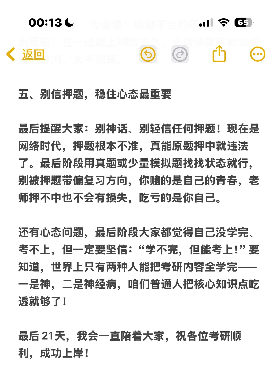 最后阶段大家都觉得“没学完”,但请坚信“学不完,但能考上”!世界上只有两种人能学完考研所有内容——神和神经病,普通人吃透核心知识点就够了