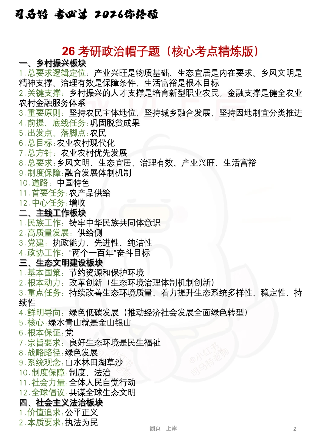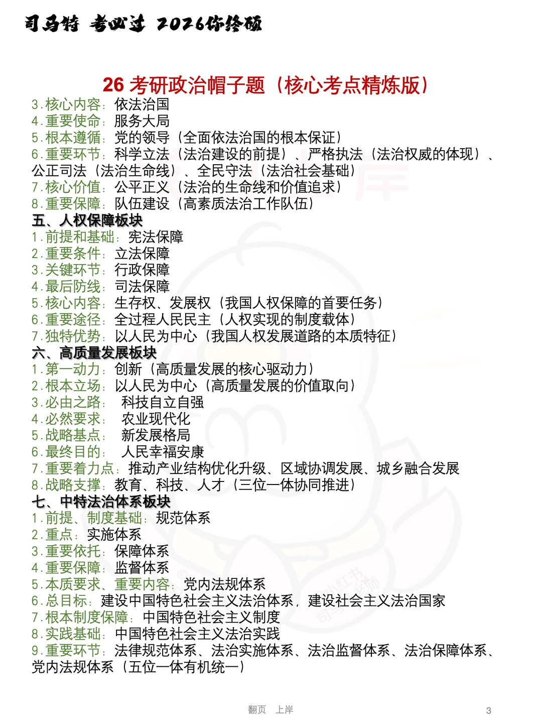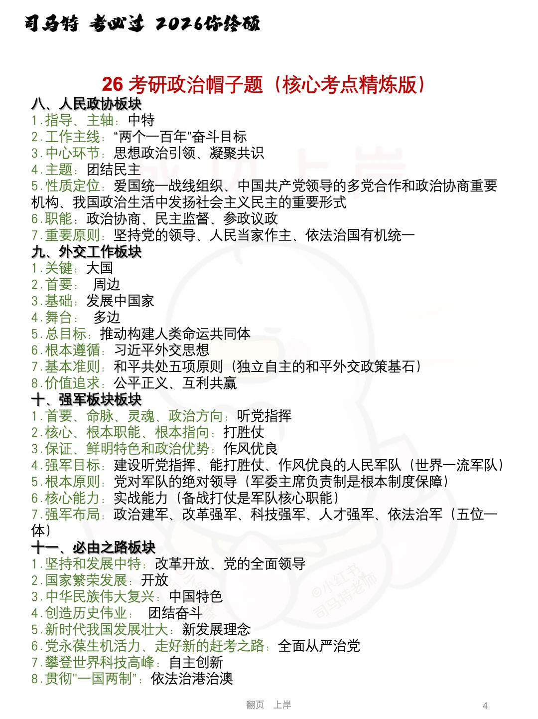 司马特老师 26考研 高频考点 核心考点 考研政治 政治笔记 政治 26考研政治 上岸许愿季 考研政治帽子题