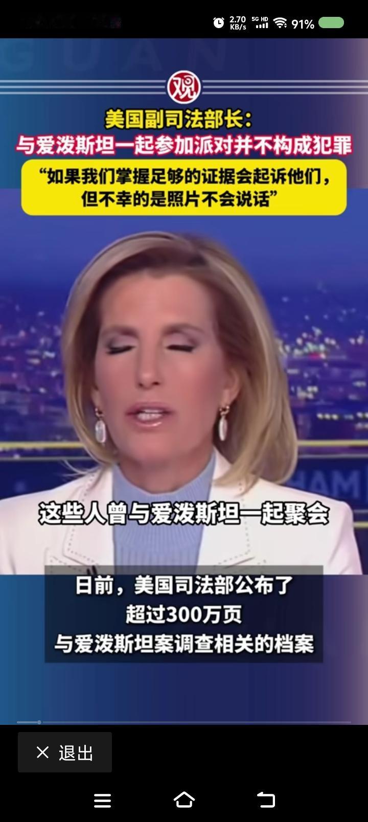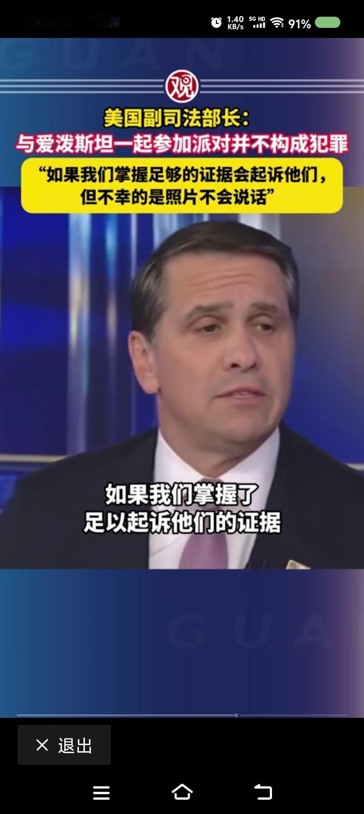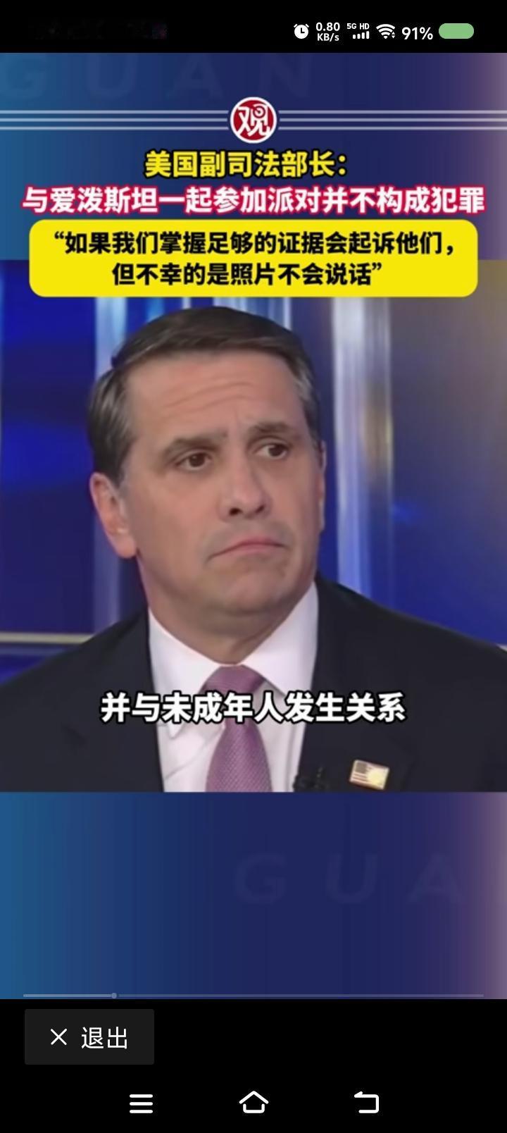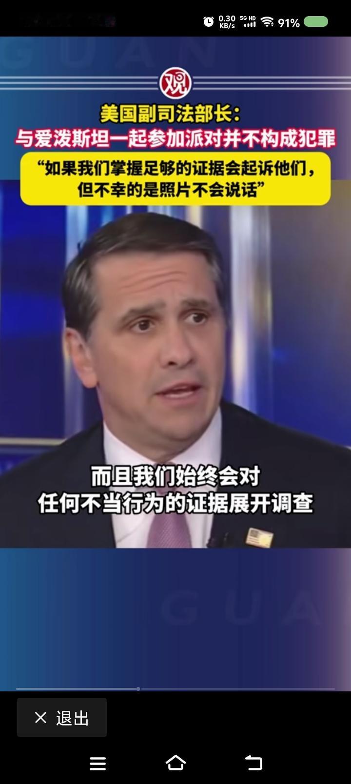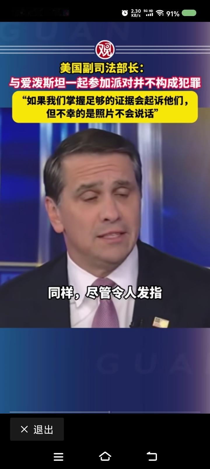 这就是美国司法部官员的水平?—— 据报道,主持人问美国司法部副部长:“爱泼斯坦案的文件公布了不少,有些人与爱泼斯坦聚会,与未成年人发生性行为,是否有人会被起诉?” 该官员说:“我们永远不会说‘不’。我们会对任何不当行为的证据调查。与爱泼斯坦聚会不违法,与他发邮件不违法……不幸的是,照片不会说话。” 点评: 是没有证据,还是不敢找证据?连特朗普都说这事过去了,别老盯着不放,司法部能有何作为? 有人以为特朗普会揭开爱泼斯坦案的真相,不料,倒垃圾式地公开一些信息,有的抹去,有的为了误导故意遮掩…… 丢人! 特朗普,你的第二任期,又是0分?