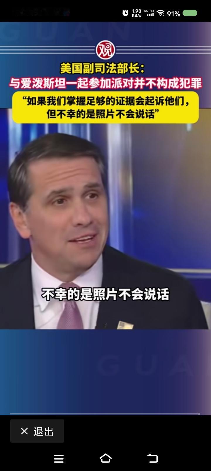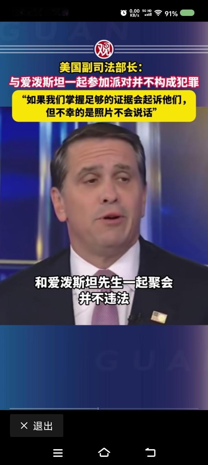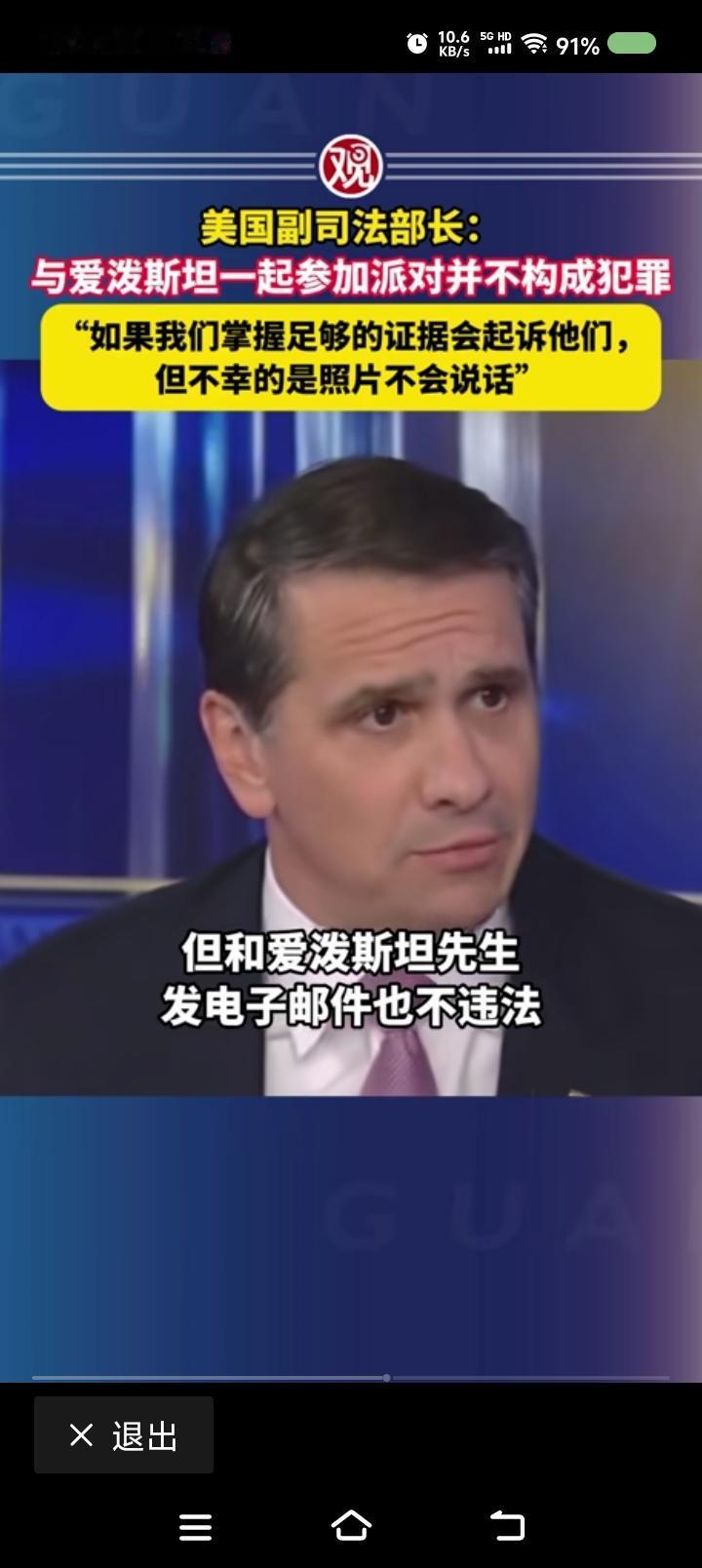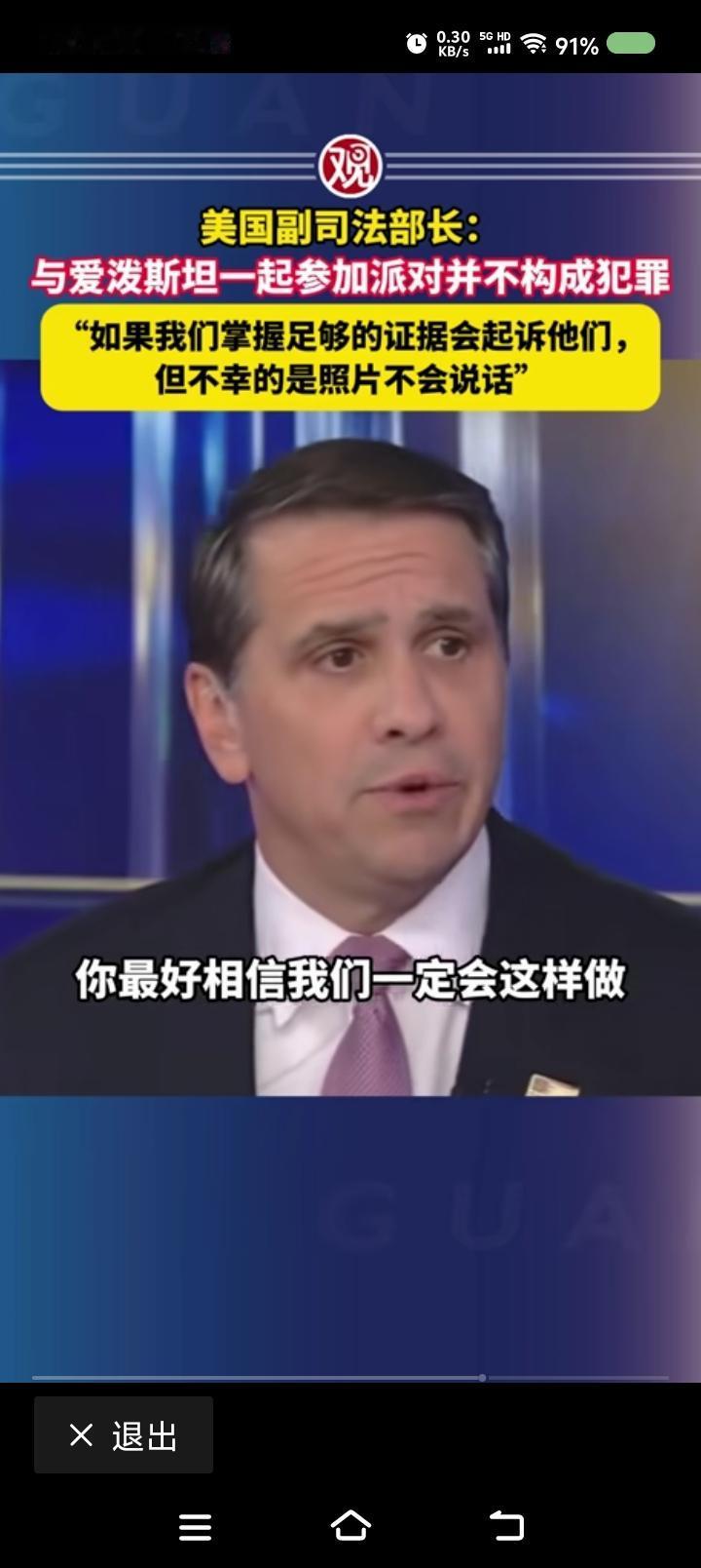 这就是美国司法部官员的水平?—— 据报道,主持人问美国司法部副部长:“爱泼斯坦案的文件公布了不少,有些人与爱泼斯坦聚会,与未成年人发生性行为,是否有人会被起诉?” 该官员说:“我们永远不会说‘不’。我们会对任何不当行为的证据调查。与爱泼斯坦聚会不违法,与他发邮件不违法……不幸的是,照片不会说话。” 点评: 是没有证据,还是不敢找证据?连特朗普都说这事过去了,别老盯着不放,司法部能有何作为? 有人以为特朗普会揭开爱泼斯坦案的真相,不料,倒垃圾式地公开一些信息,有的抹去,有的为了误导故意遮掩…… 丢人! 特朗普,你的第二任期,又是0分?