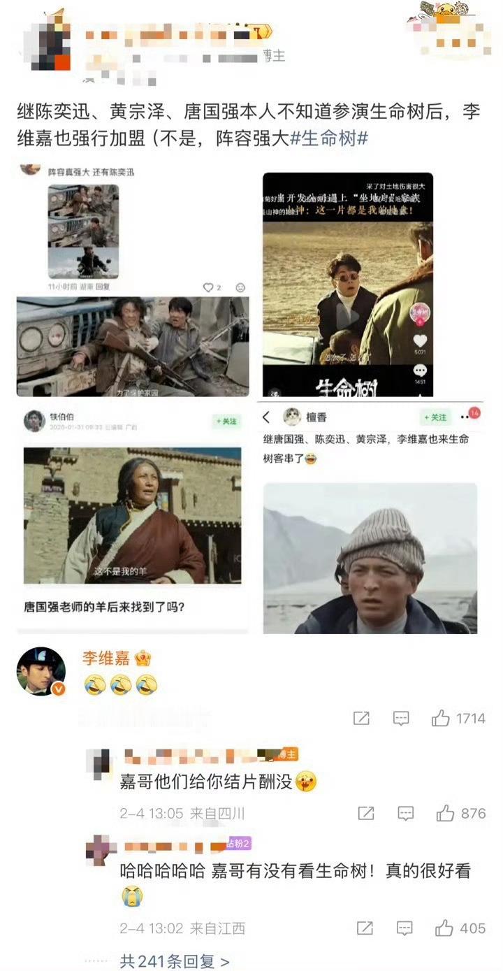 李维嘉回应出演生命树电视剧生命树 李维嘉冲浪回应《生命树》撞脸,速度绝了!群演这张脸真的太像了,建议剧组直接签成专属脸替~