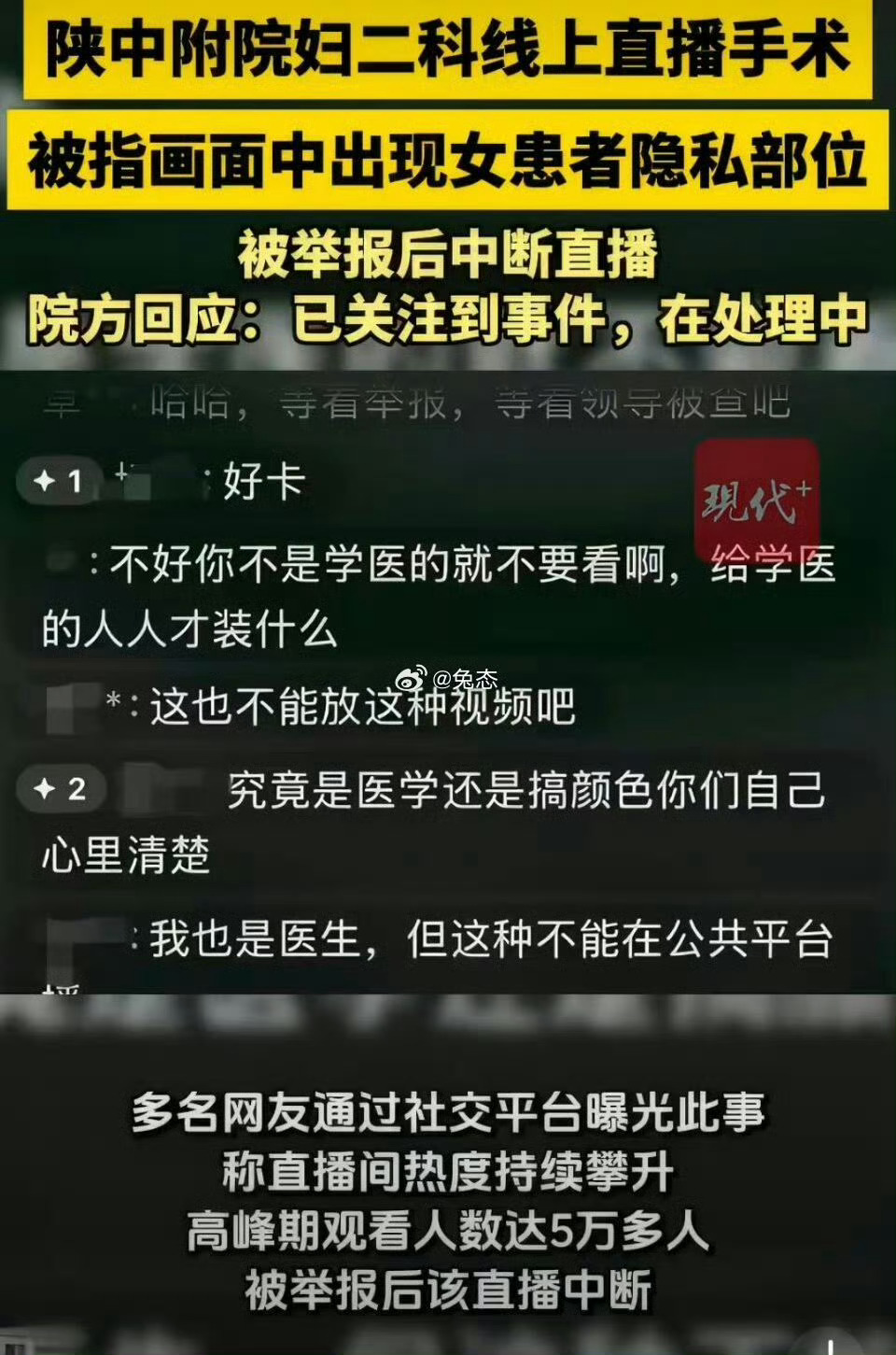 隐私部位被5万人盯着看如何放心就医一定要严惩好吗 异性医生给女患者就算查体也要第三方在场 怎么手术就可以直播了?就这样保护患者隐私的吗。