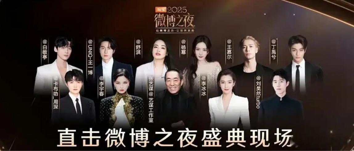 微博之夜请到了肖战、王一博、杨幂、杨紫、李宇春、周深这些顶流,还有张艺谋、邓超、黄渤、吴京、沈腾、舒淇、李冰冰、惠英红、宋佳、辛芷蕾、谢霆锋、雷佳音、黄晓明这些电影咖来捧场,可见明星们对这个平台还是不敢得罪的。赵露思和赵丽颖已经和这个平台分道扬镳。不过可以期待过几年📕或者🎶来个盛典之夜。