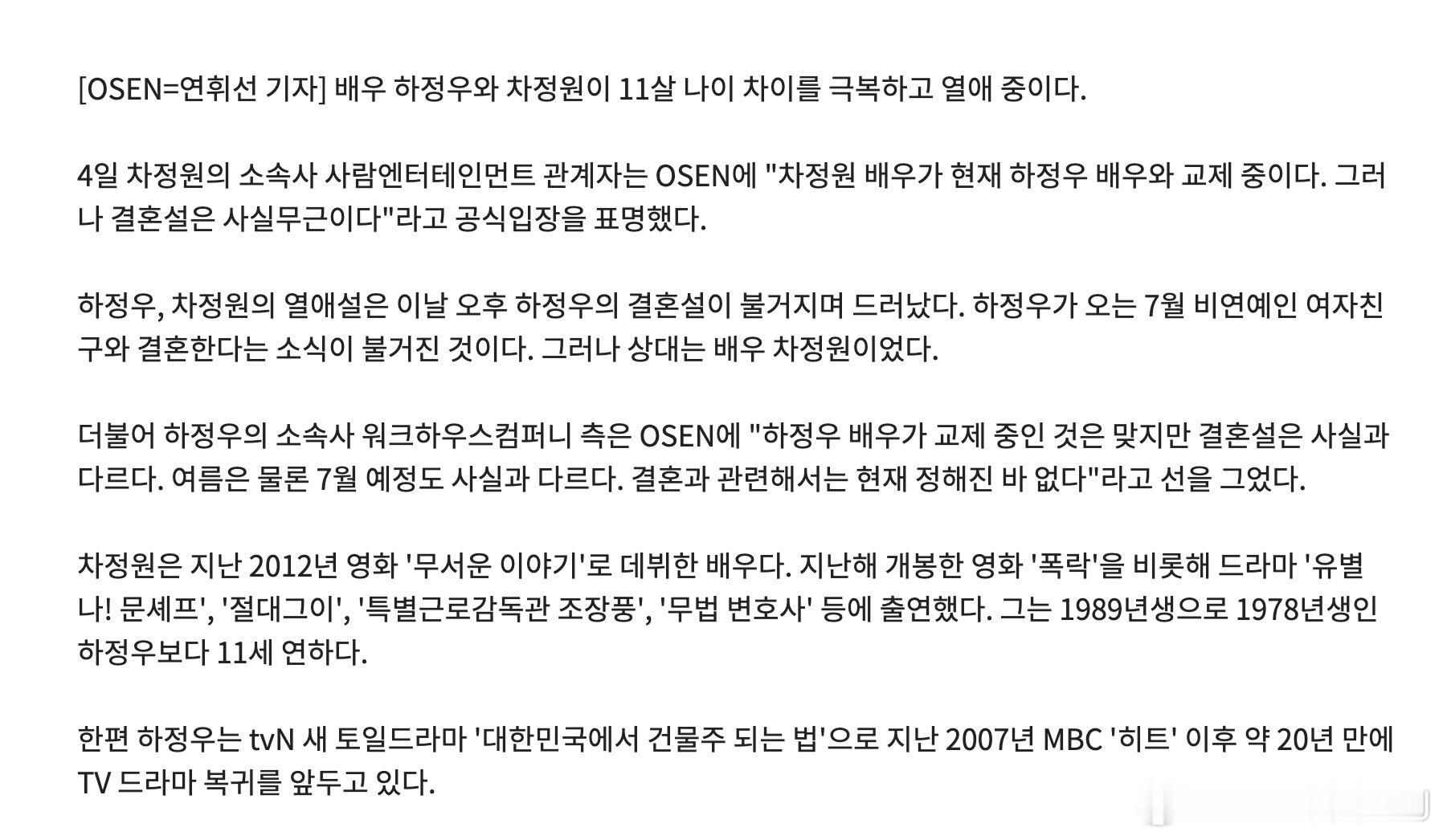 这位女友并非之前传说的“圈外素人”,而是生于1989年、出演过《她很漂亮》《Oh! 半地下室的女神们》《绝对男友》等作品的车贞媛。