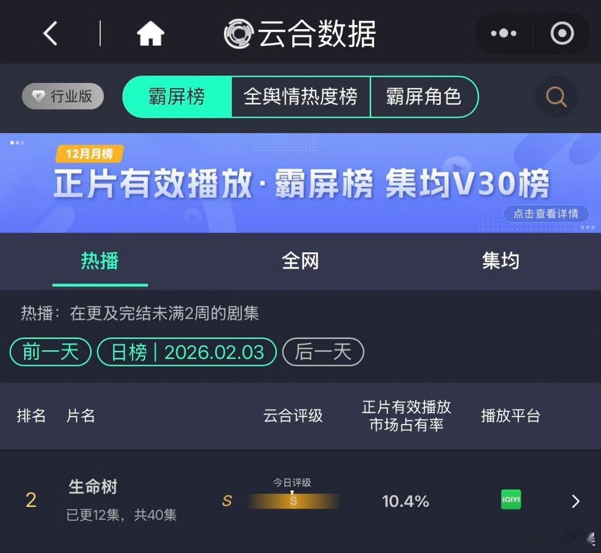 生命树10.4%杨紫、胡歌《生命树》昨日云合占比10.4% 评级S 小🌲收视每天都有在长啊!口碑持续发酵ing,一起来看质感超棒的国产好剧生命树~新娱