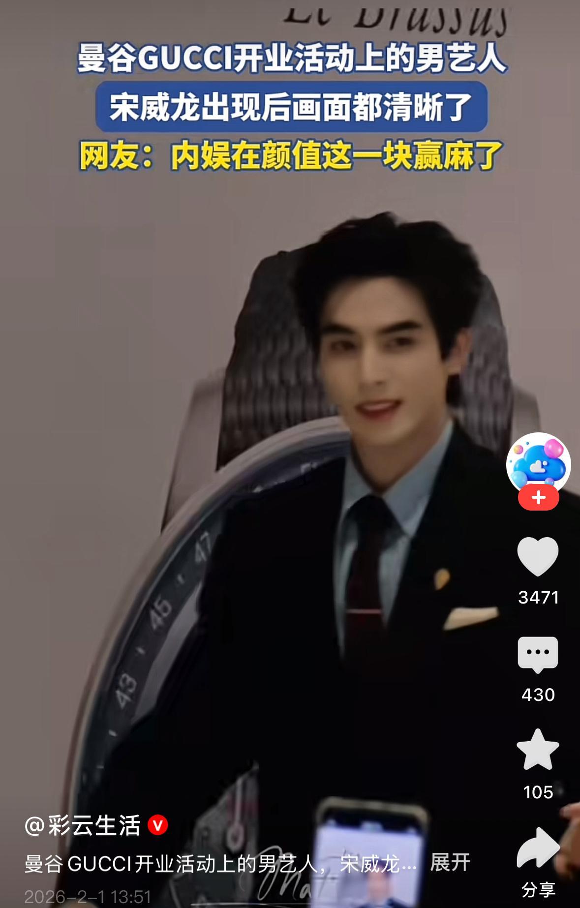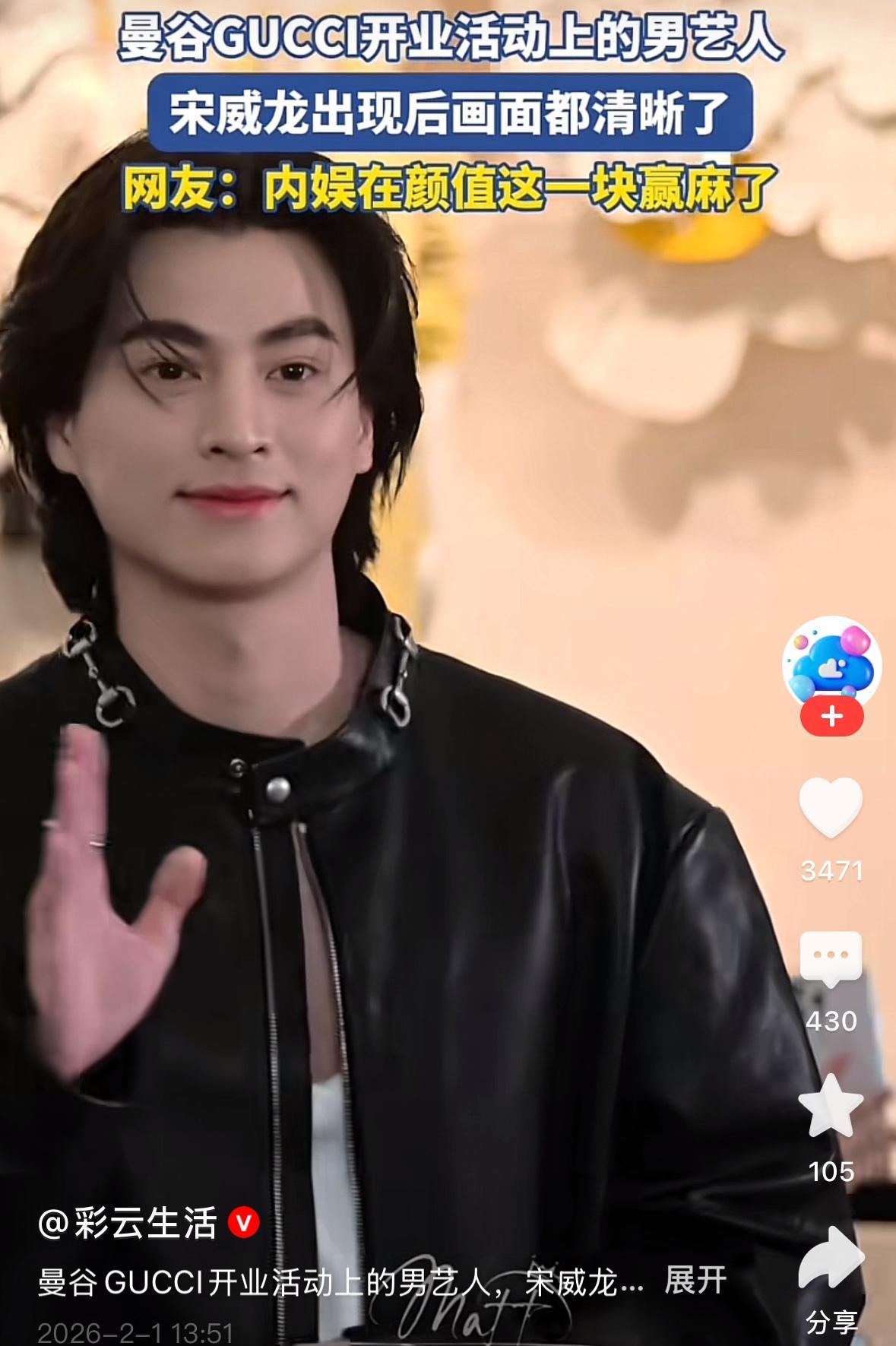 曼谷GUCCI现场,空气都凝固了。 不是因为别的,是旁边的人,直接被衬成了“夜店牛郎”。 人潮,尖叫,闪光灯像白昼。 宋威龙,一张脸,就这么平铺直叙地走出来了。 那不是粉丝滤镜,那是骨相的绝对权力。 是一种古希腊雕塑打碎了,又被东方神祇重新拼起来的暴力美学。 什么叫文化输出? 这就是。 一张东方面孔,直接在别人的主场,重写了审美标准。 别扯什么乱七八糟的风格了。 有些人,比如宋威龙,比如张凌赫,他们的帅,不是一种选择题,是一种生理反应。 直接,粗暴,砸在你心巴上。