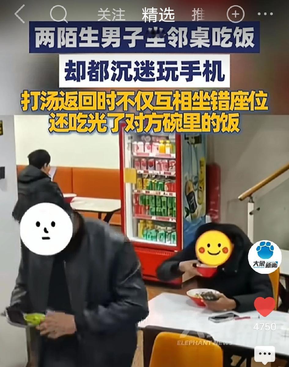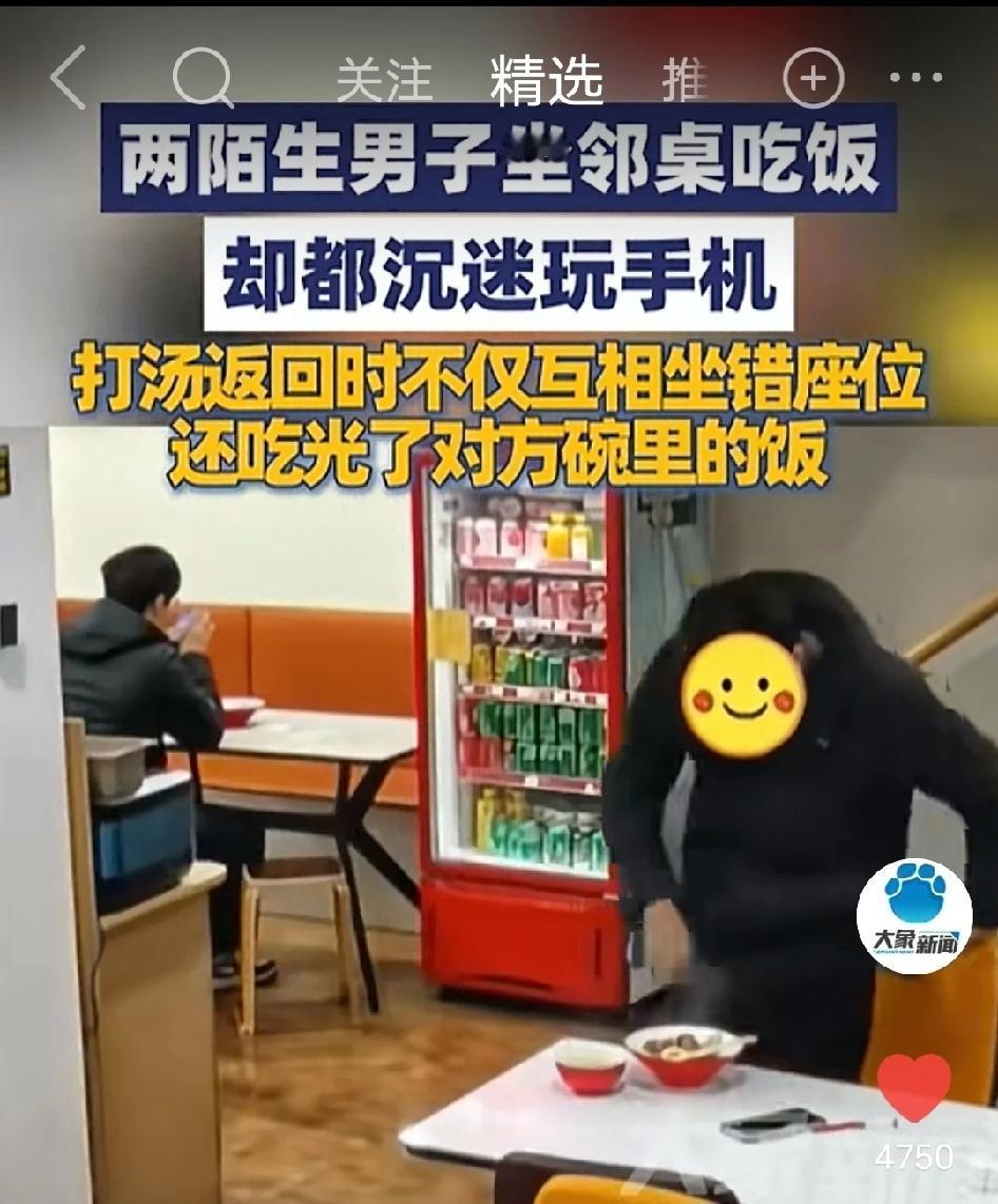 让人惊呆了!安徽合肥一家猪脚饭店,两男子因沉迷手机互换座位,竟把对方碗里的饭吃得干干净净,全程毫无察觉,老板得知后不仅没调侃,还大方承诺下次免单,这场乌龙又暖心的相遇,承包了全网今日份快乐! 2026年2月3日中午11点半,合肥这家主营猪脚饭的快餐店里,两名陌生男子一前一后推门而入。两人默契十足,都点了18元的招牌猪脚饭,一人加了卤蛋,一人加了豆干,随后选了相邻的空位坐下。 从落座那一刻起,两人就开启了“沉浸式刷手机”模式,一人盯着短视频笑得无声,一人埋头回工作消息,眼睛死死黏在屏幕上,对周围的一切都漠不关心,连邻座是谁都没抬头看一眼。 大约10分钟后,左边的男子起身去打免费的萝卜排骨汤,脚步匆匆,目光依旧没离开手机屏幕,转身回来时,径直一屁股坐在了右边男子的座位上,拿起碗就继续埋头干饭,仿佛这就是自己的位置。 没过5分钟,右边的男子也起身去打汤,同样全程低头看手机,回来后自然地坐到了左边男子的空位上,拿起碗就吃,丝毫没发现自己坐错了地方。 两人就这样在对方的座位上,把对方碗里的猪脚饭吃得干干净净,连卤蛋和豆干都没剩下,全程没有一句交流,也没有一丝察觉,直到各自放下碗筷,准备起身离开。 饭店老板王先生在监控里把这一幕看得清清楚楚,一开始还犹豫要不要提醒,怕打断两人的“专注”,直到两人吃完,才笑着上前告知实情。 两人听完瞬间愣住,对视一眼后都忍不住哈哈大笑,丝毫没有介意这场乌龙,反而觉得格外有趣。老板更是幽默表示:“下次你们再来吃饭,直接免单!”用一句话化解了所有尴尬,也让这场错位相遇多了几分温暖。 看完真的又好笑又暖心!这大概就是当代低头族的“最高境界”吧,吃饭、打汤、落座全凭肌肉记忆,手机才是本体。不过更让人感动的是两位男子的豁达,和老板的暖心格局,一场乌龙没有矛盾,只有笑声和善意。 生活里的小插曲,看似荒诞,却藏着最朴素的温柔。愿我们少点手机依赖,多看看身边的风景,也愿每一次相遇,都能这般轻松又温暖~ 合肥猪脚饭乌龙事件 低头族的搞笑日常 老板格局拉满 暖心瞬间