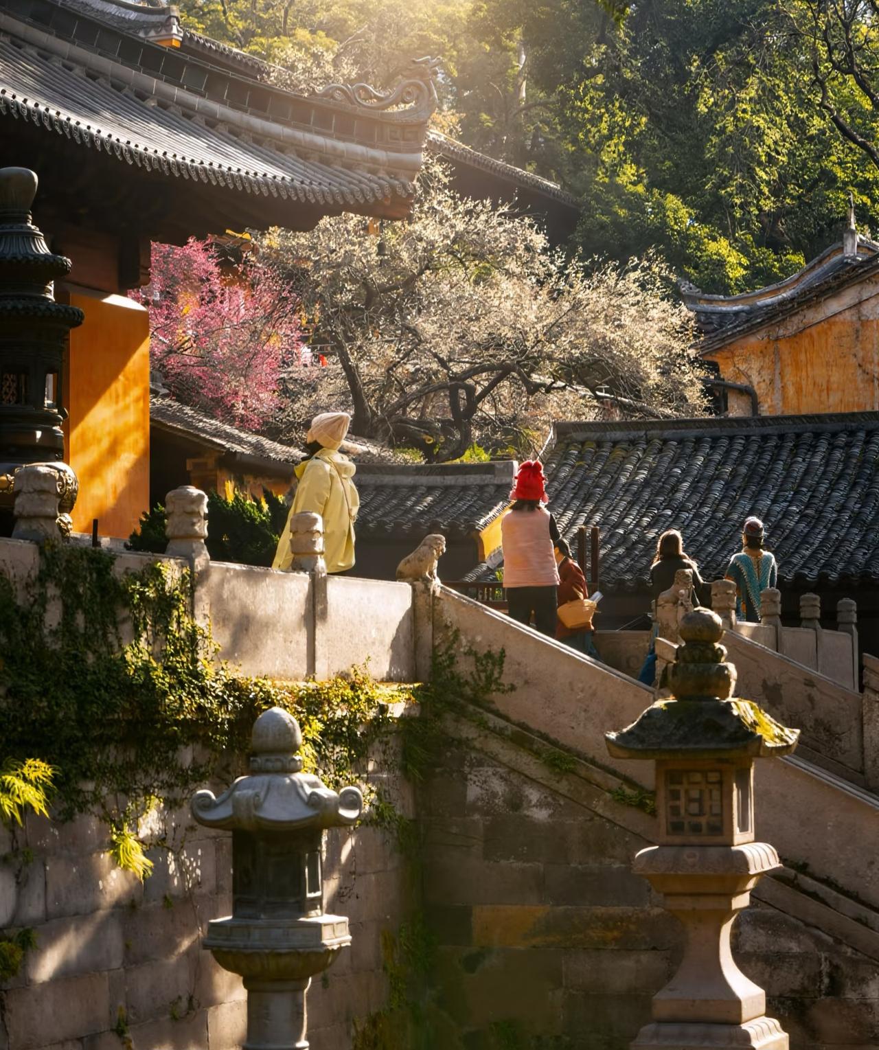 江南无所有,聊赠一枝梅! 国清寺的隋梅又开了 自从前两年跟朋友来过国清寺之后 心里便暗暗许下了心愿 只要人还在浙江 每年隋梅开放的时候都要来看看 于是今年我又来了 站在树下仰头观望 只见细碎的花瓣穿过晨光静静飘落 时间仿佛在此刻静止一般 一树梅花一寺院 一季冬风一千年 国清寺 腊梅 禅院腊梅 国清寺梅亭 国清寺梅 寺赏梅 隋梅