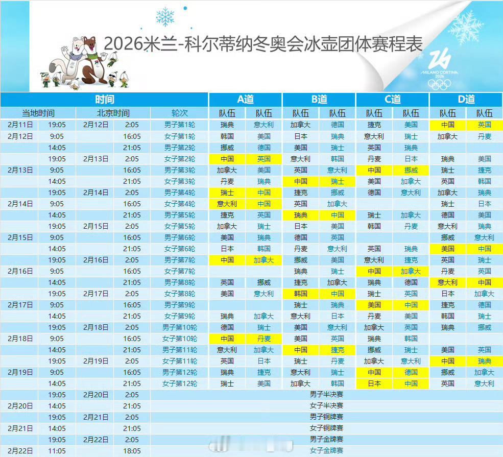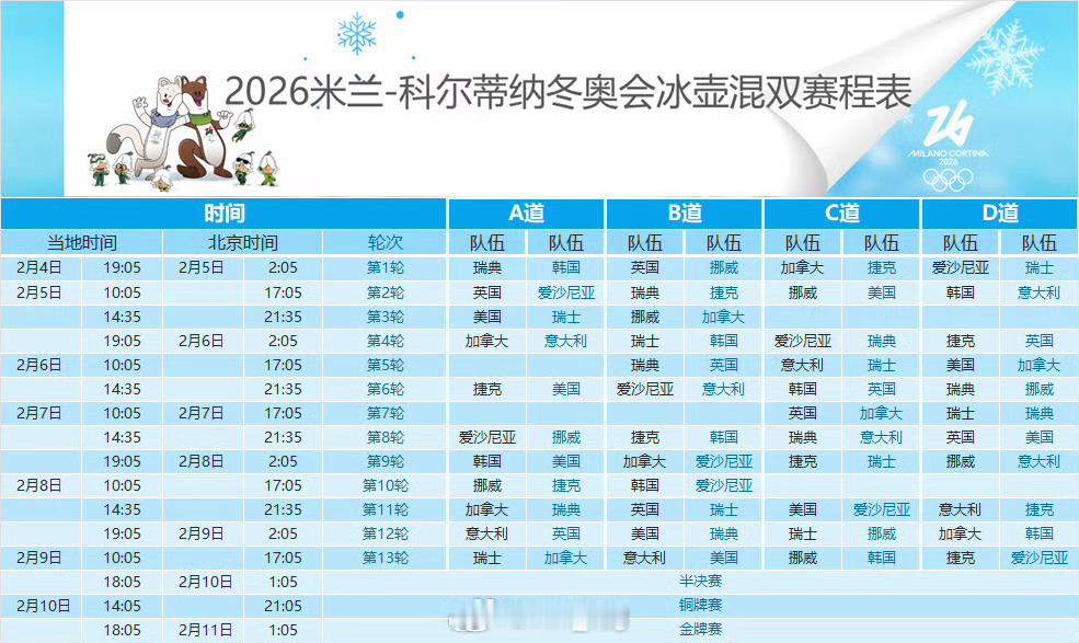 2026年米兰科尔蒂纳冬奥会 🥌明晨就有比赛了
