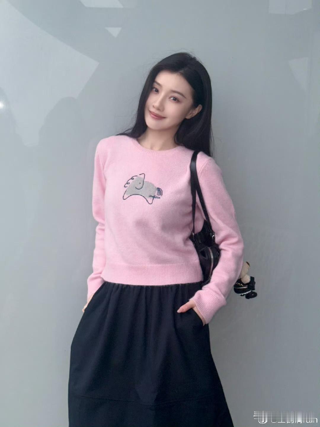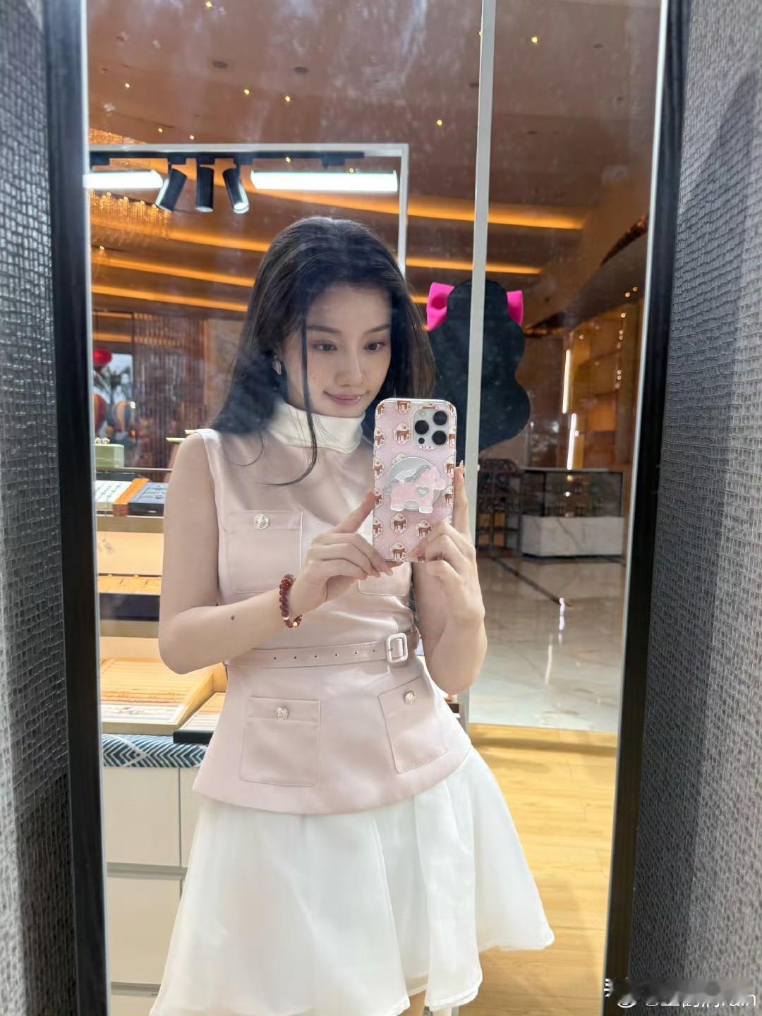 宋祖儿粉色刺绣长裙