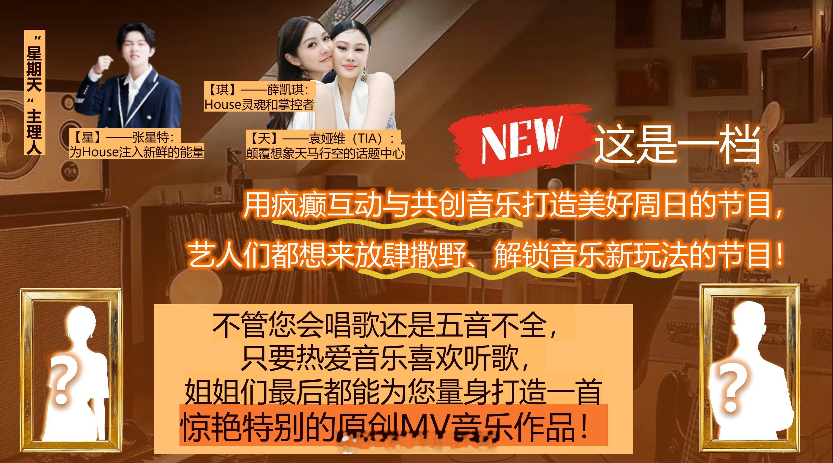 综艺《嗨棒星期天》拟邀嘉宾:张星特、薛凯琪、袁娅维、张钧甯、陈意涵、李雪琴、张新成、陈昊宇、黄丽玲、孟子义、代旭、徐志胜、黄宣等节目简介:以真实陪伴为内核,以发疯撒野为载体,一起对抗星期天综合征,释放多巴胺一一嘉宾在疯玩与共创音乐中放松自我,观众在爆笑与共鸣中放下焦虑。更有专属周日音乐库,在旋律中定格记忆,为一周收尾留下温暖又鲜活的印记,轻盈开启新一周。