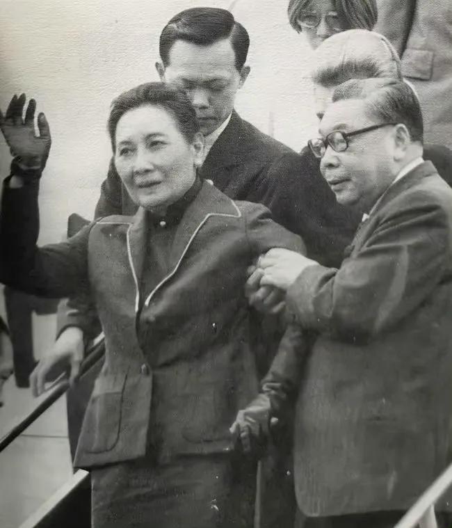 这张照片是宋美龄和蒋经国走下飞机的瞬间。 蒋介石在1975年4月病逝后,宋美龄于同年9月以治病疗养的名义赴美,在纽约长岛蝗虫谷定居,这一住就是11年,直到1986年才返回台湾。 1991年9月,因在台湾的政治权力斗争中失利,她再次离开台湾赴美,之后就一直定居在纽约曼哈顿,直到2003年去世,再也没有回过台湾。