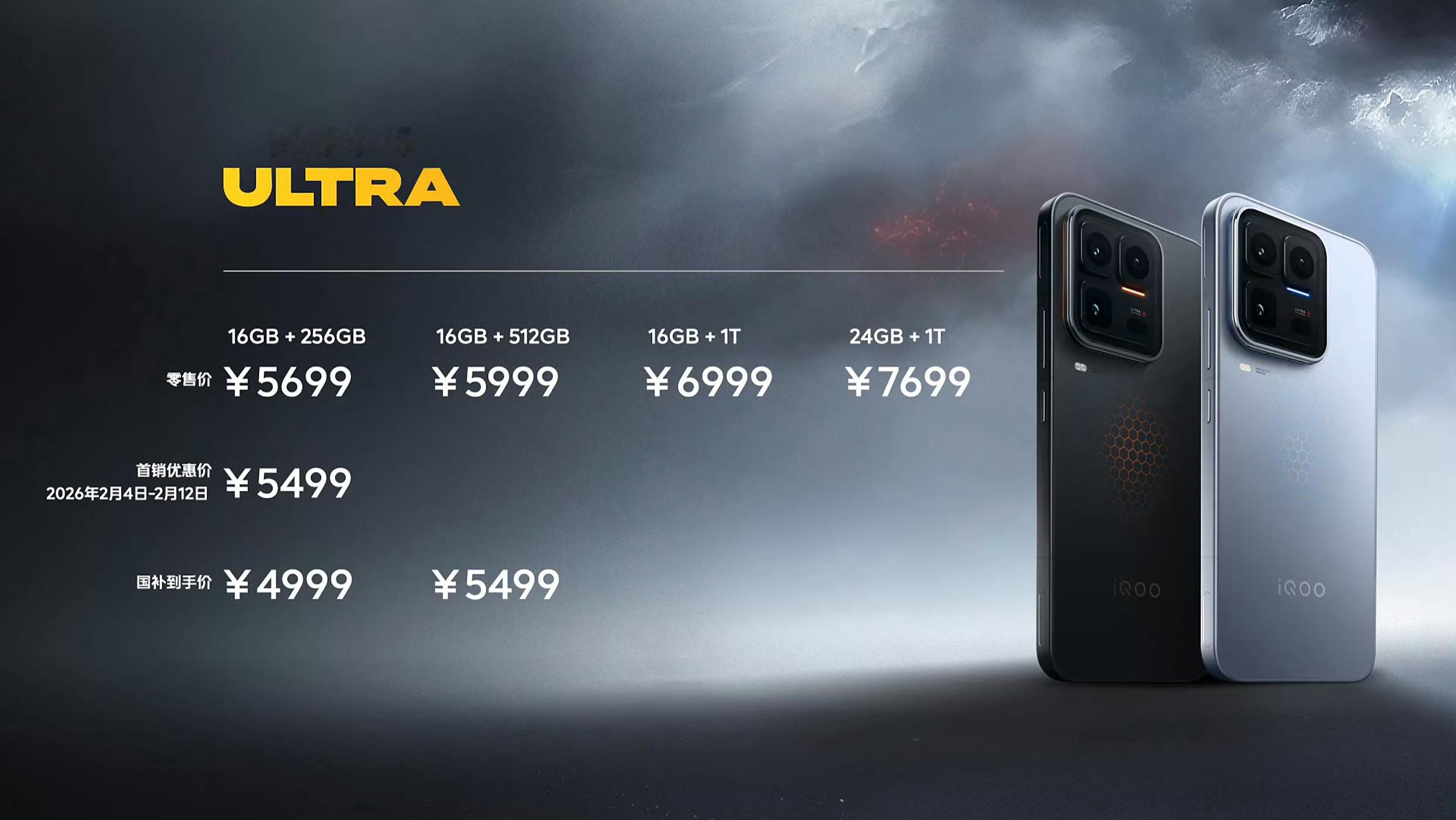 iQOO15 Ultra iQOO15 Ultra 初始配置16G+256G,5699元 ,首销期优惠200元,到手价5499元。