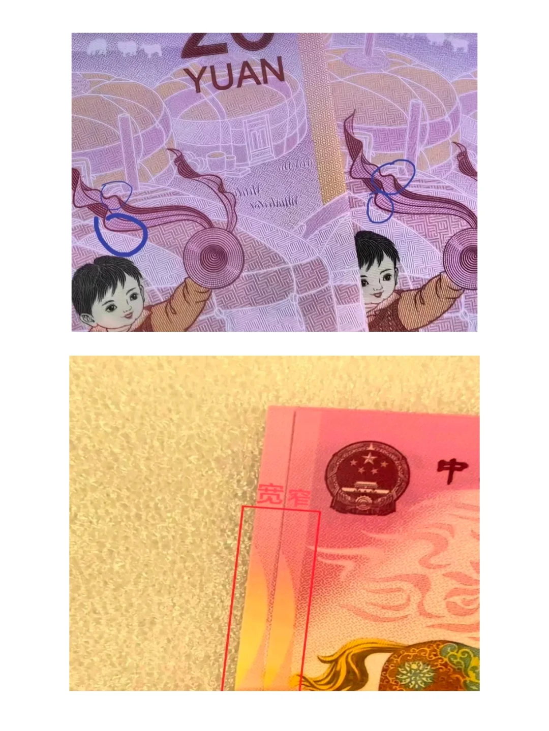 又到了一年一度的找不同环节,对于刚发行的马年纪念钞,有些网友开始拿着放大镜一点一点的对比,进而衍生出上面这几个版别,这些版别都是正常的印刷误差,是不被市场所认可的。