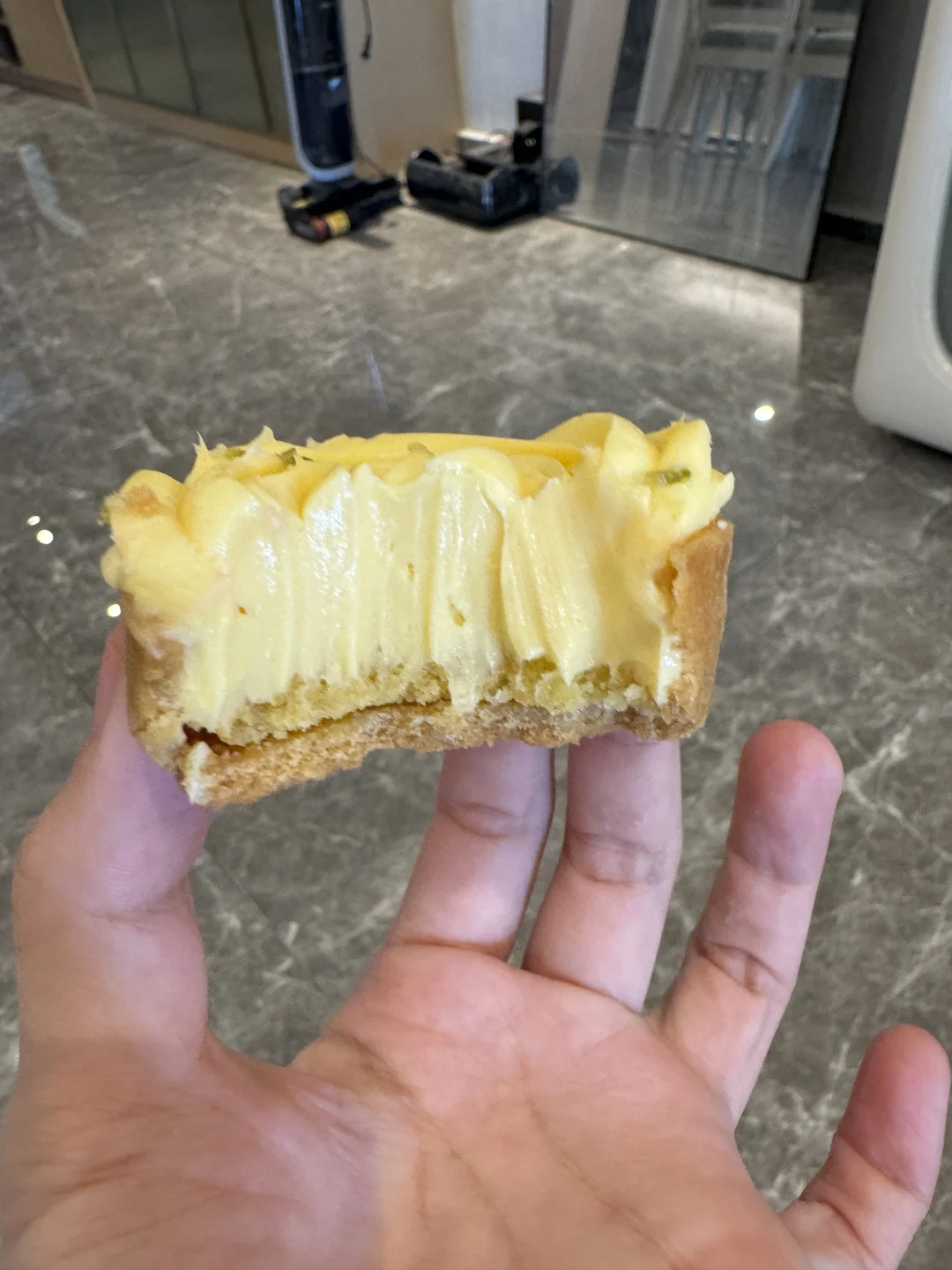 比想象中的好吃 顶部厚厚的芝士馅儿 整体偏酸