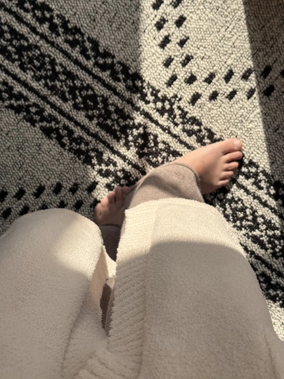 最近能让我感到有实感的松弛下来的,是我家这张地毯。看上去有种非洲部落的手工编织感,触觉上又是超出羊毛触感的柔软,这种视觉上的松弛,使用感上的精致处理,让我每个感官都得到了很好的照顾。95%新西兰羊毛,没有胶水编织制成,让我不用为了外观去妥协手工编织毯的粗粝使用感。柔韧的羊毛带来恰到好处的承托,行走如漫步沙漠草地,久用愈发温润。