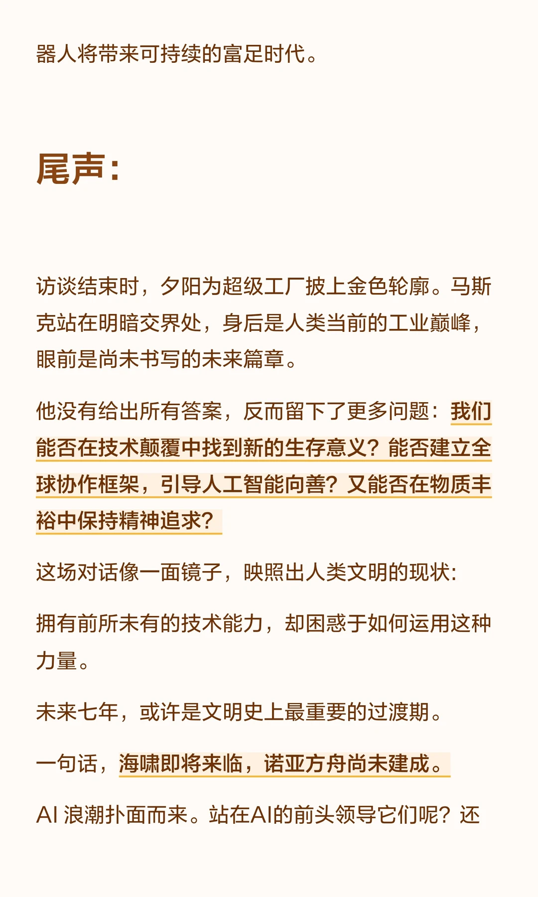 埃隆·马斯克坐在德州超级工厂里,语调平静地说出这句话时,窗外是正在组装的机器人生产线。这一刻,时间在折叠:一边是当下最先进的制造技术,一边是关乎人类存续的未来图景。