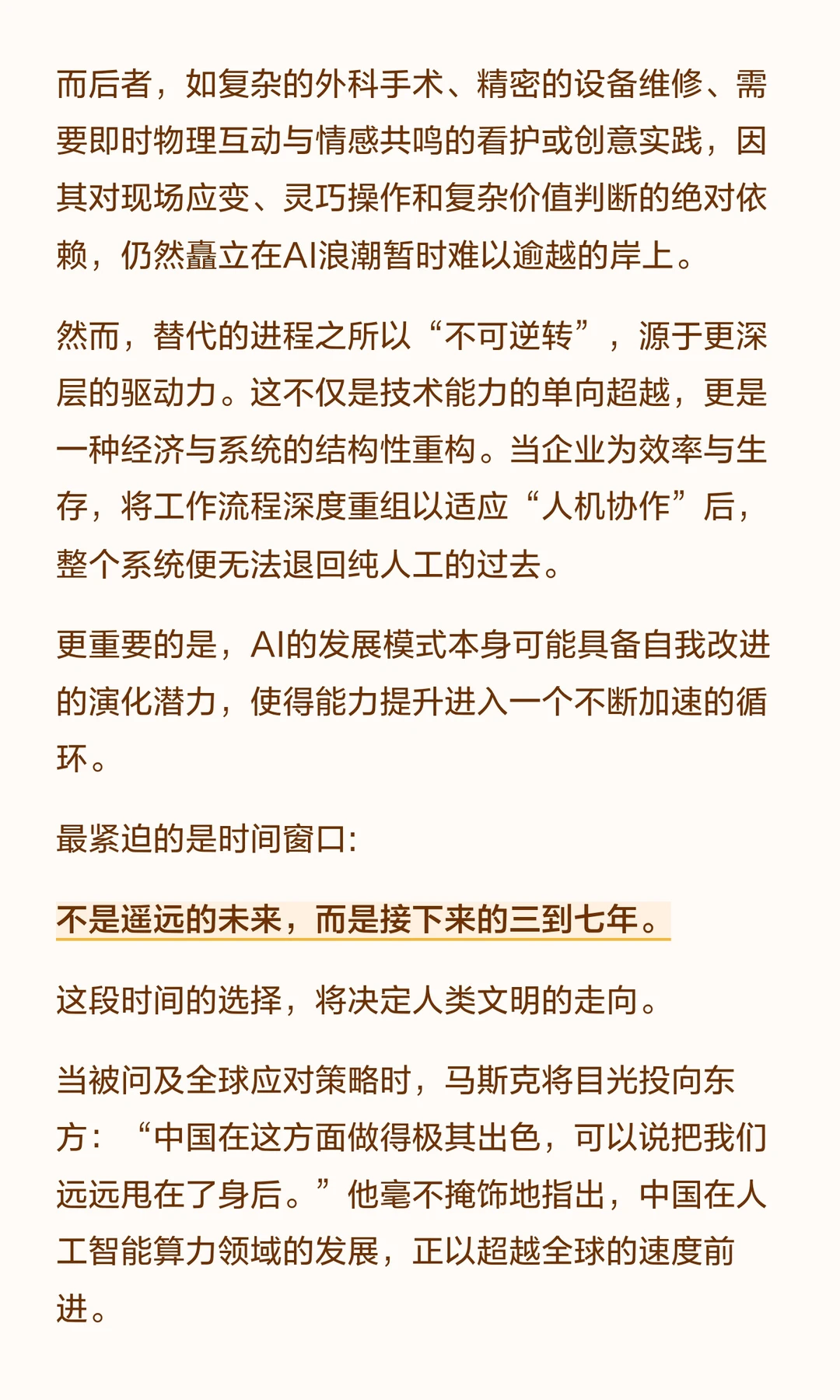 人工智能加速变革,马斯克认为未来七年至关重要。