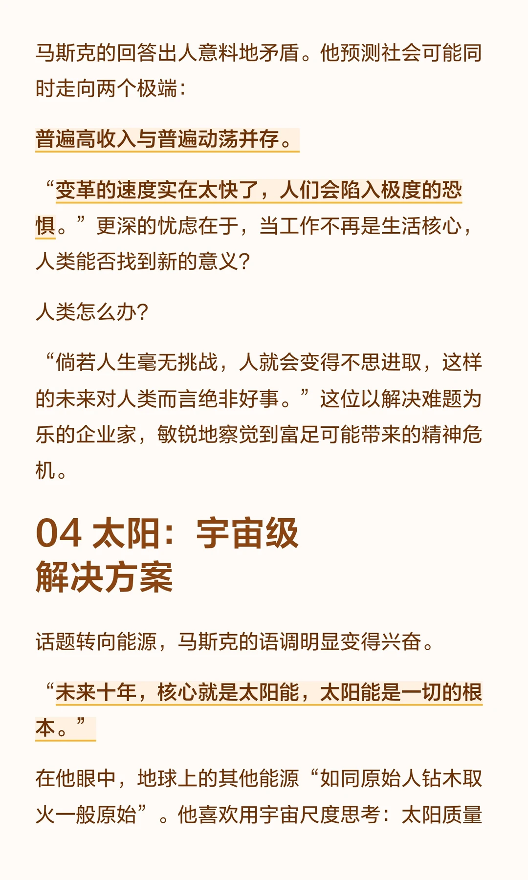 同时,他提出太空太阳能计划,认为未来十年核心是太阳能。