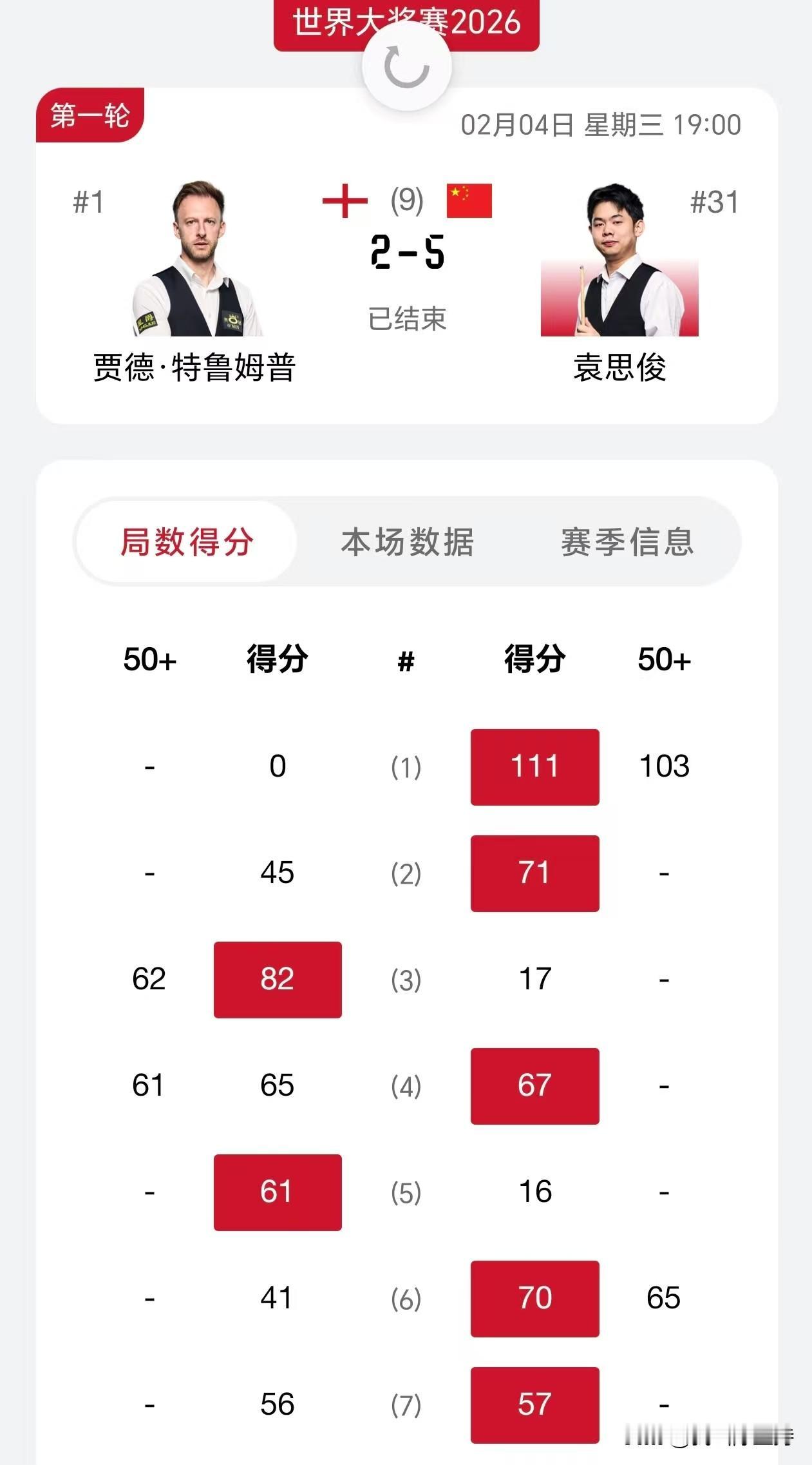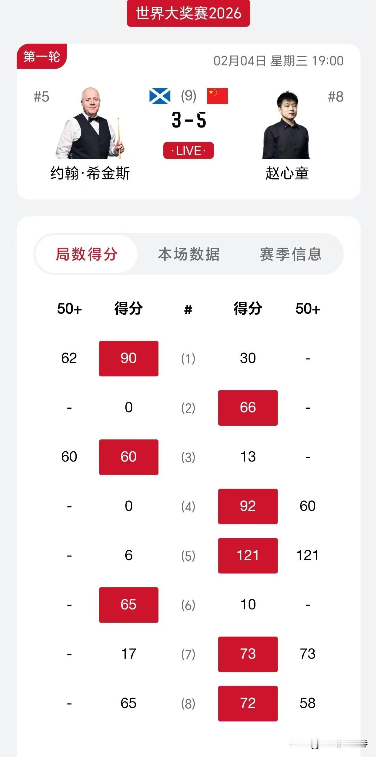 这次香港世界大奖赛,中国球员过年了,10人参赛9人晋级第二轮,也就是16强。唯一一个被淘汰的是丁俊晖,这个也合理,因为丁俊晖是先驱者,把接力棒已经交给了另外九名中国球员,功劳巨大。 庞俊旭对阵墨菲,率先结束,庞俊旭打出了5-1的悬殊比分,其中打出两杆130+,面对这样的庞俊旭 墨菲确实也无能为力。 赵心童5-3战胜了希金斯,这是我见过赵心童非常专注的一次,老老实实防守,该进攻的时候进攻,还是很难打。希金斯一直领先,下半场赵心童打出121分反超比分,希金斯扳平。赵心童打出73分,比分来到4-3。最后一局,都有失误。最后进入抢黑,希金斯翻袋差点翻进,赵心童最后一杆定乾坤,拿下比赛。 袁思俊爆冷5-2击败特鲁姆普,这一次袁思俊发挥不错,不是很保守,多次上演逆转,最后一局1分逆转获胜。 明天16强全部亮相 下午1点,肖国栋对阵奥沙利文,斯佳辉对阵庞俊旭,张安达对阵霍金斯 晚上7点,赵心童对阵塞尔比,袁思俊对阵卡特,吴宜泽对阵常冰玉,周跃龙对阵杰克琼斯。 中国球员的表现,非常值得关注!