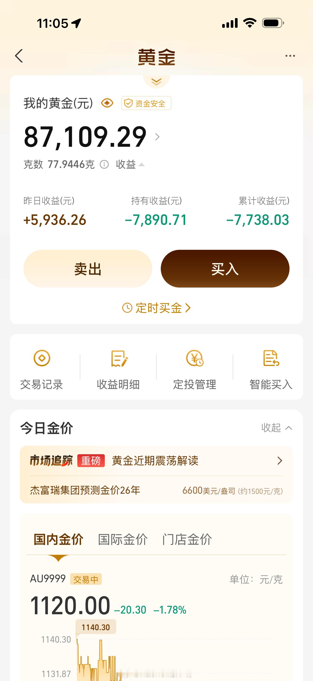打金店1个月垃圾扫出金粉值200万1200买入的重仓目前持有收益还是负值 但是对于打算长期持有的人来讲 其实也没啥 毕竟现在也没什么好项目