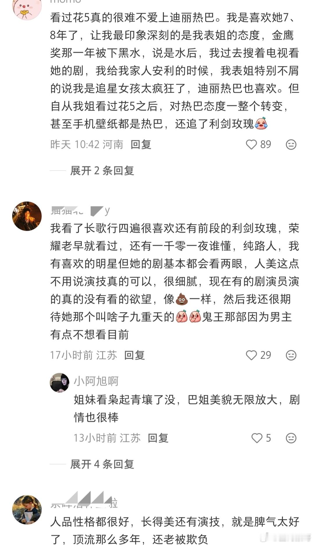 xhs上刷到一篇好帖子:想看看路人对迪丽热巴的看法。高赞全都是在夸她的美貌作品性格人品,她在下沉平台的国民度和路人缘真的很好很好!