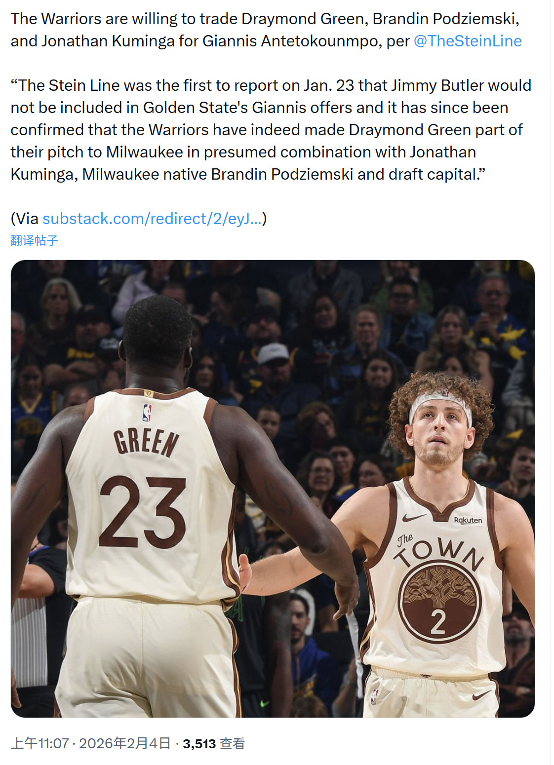 2月4号最新动态,勇士加大筹码,非要换到字母哥!!追梦格林,波杰姆斯基,库明 【1评论】【1点赞】 扬尼斯·安特托昆博 勇士队 布兰丁·波杰姆斯基 雄鹿队 国际当红篮球明星 风雨看世界 2026-02-04