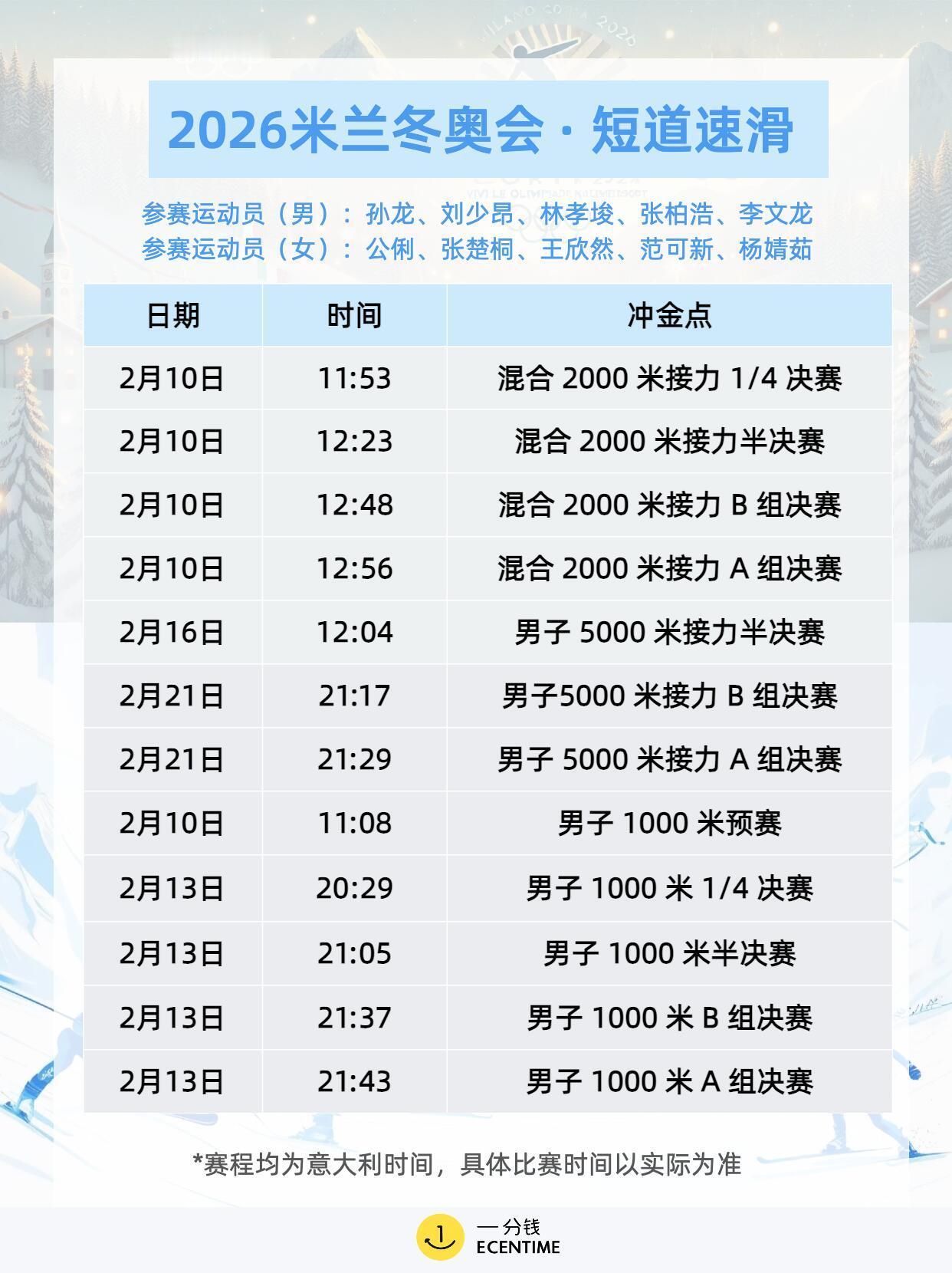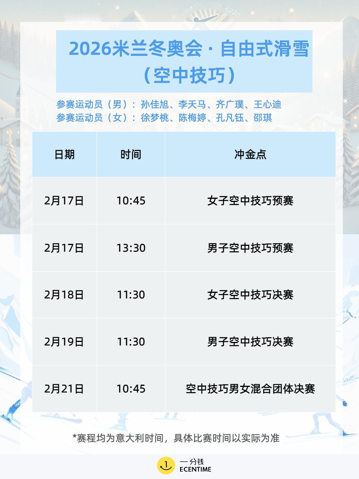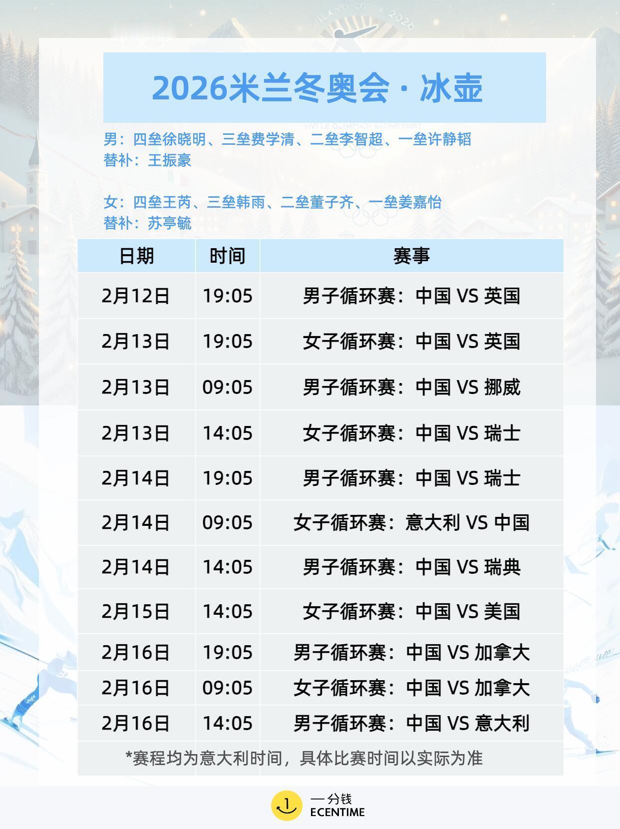 米兰冬奥会首日赛程米兰冬奥会首日赛程很满,冰壶混双率先开打,单板滑雪大跳台预赛登场,花样滑冰团体赛拉开序幕,冰球女子小组赛也同步进行,项目多看点足,观赛节奏拉满