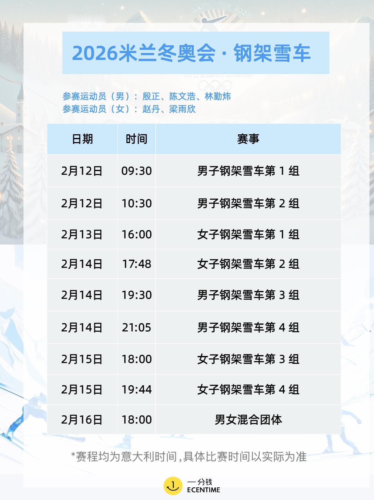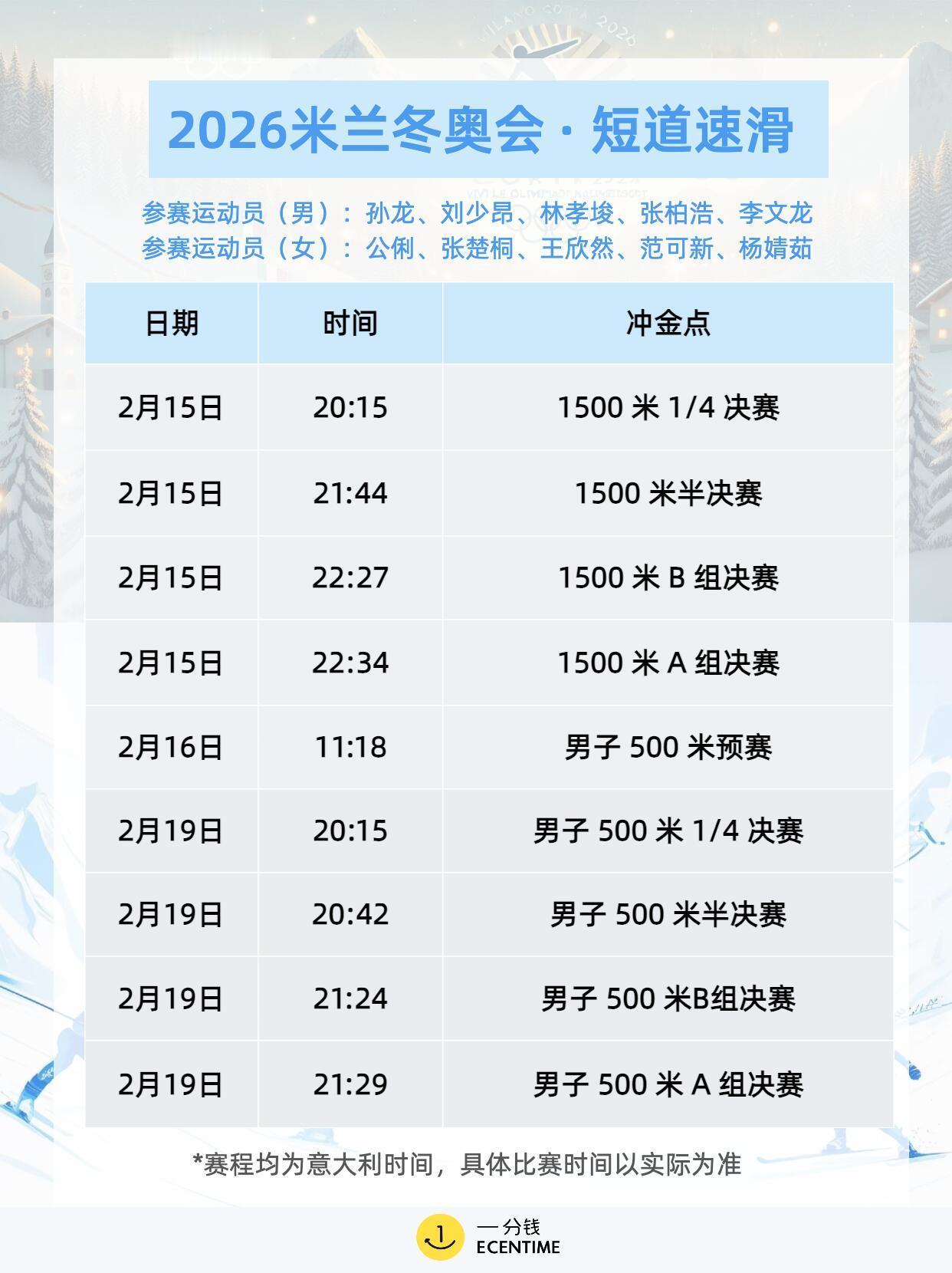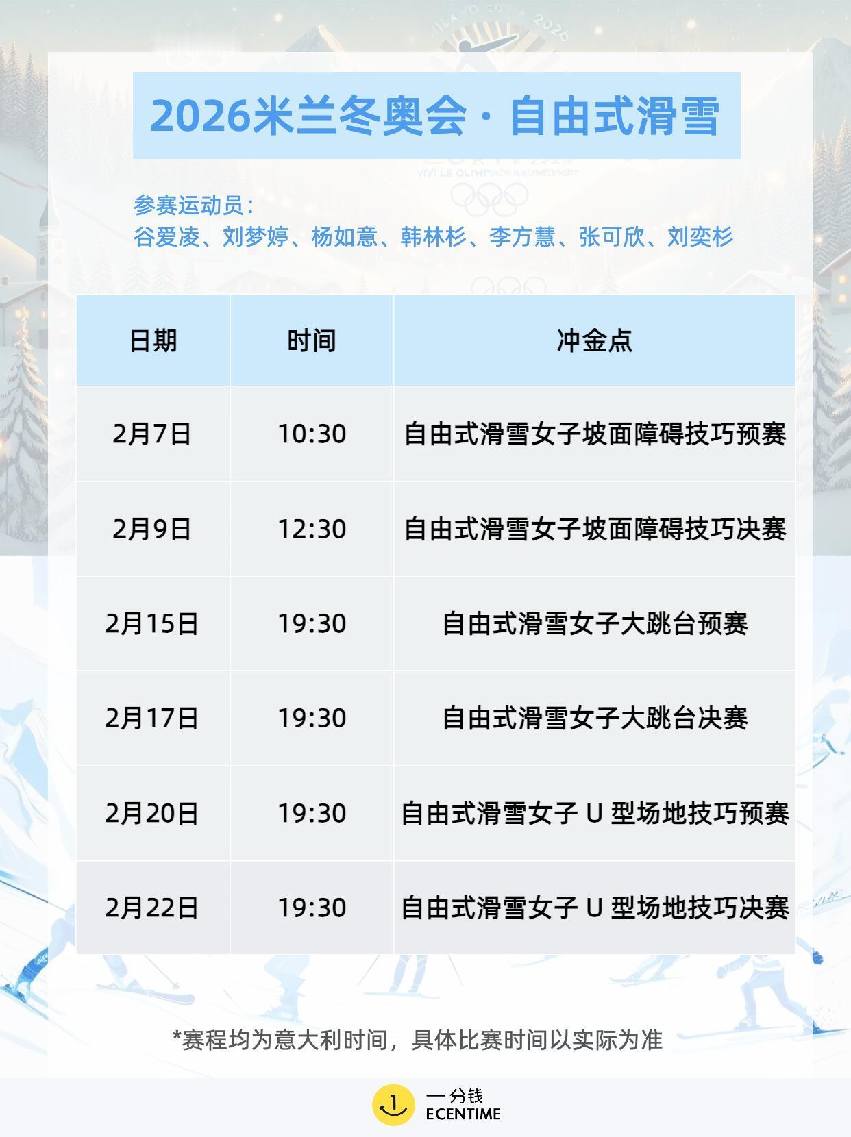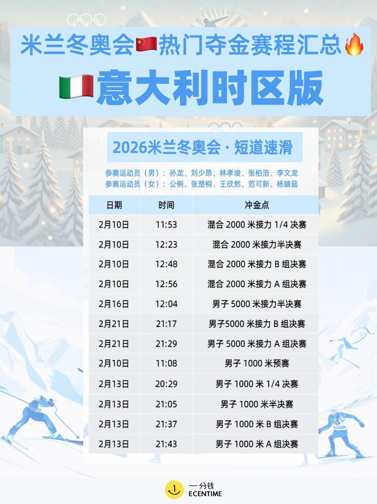 米兰冬奥会首日赛程米兰冬奥会首日赛程很满,冰壶混双率先开打,单板滑雪大跳台预赛登场,花样滑冰团体赛拉开序幕,冰球女子小组赛也同步进行,项目多看点足,观赛节奏拉满