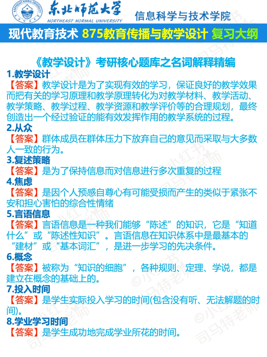教学系统设计65%、教育传播学25%、教学设计10%、现代教育技术0%。具体复习内容(节选)👆🏻🖨️全