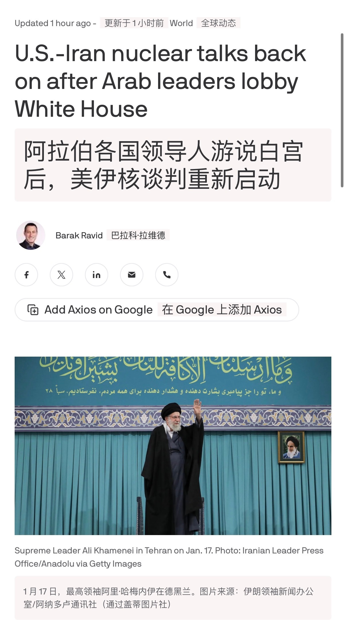 🔻两位美国官员告诉axios记者Barak Ravid,美国与伊朗在阿曼的核会谈计划在周五重启。🔻此前,多位阿拉伯和穆斯林领导人在周三下午紧急游说特朗普政府,不要兑现其此前威胁要退出的说法。🔻一位美国官员表示:“他们请求我们继续会谈,听取伊朗方面的说法。我们已经告知阿拉伯国家,如果他们坚持,我们将举行会谈。但我们对此非常怀疑。”🔻美国官员们透露,该地区至少九个国家的最高级别领导人已向特朗普政府高层传递信息,强烈要求美国不要取消与伊朗在阿曼的会谈。🔻另一位美国官员称,特朗普政府同意与伊朗举行会谈,是出于对该地区美国盟友请求的尊重,以及为了继续推进外交途径。🔻正如伊朗所坚持的那样,会谈将在阿曼进行,尽管美国最初拒绝改变原来在伊斯坦布尔会晤的计划。伊朗称失联无人机曾传回图片伊朗总统已下令启动核谈判海外新鲜事热点现场