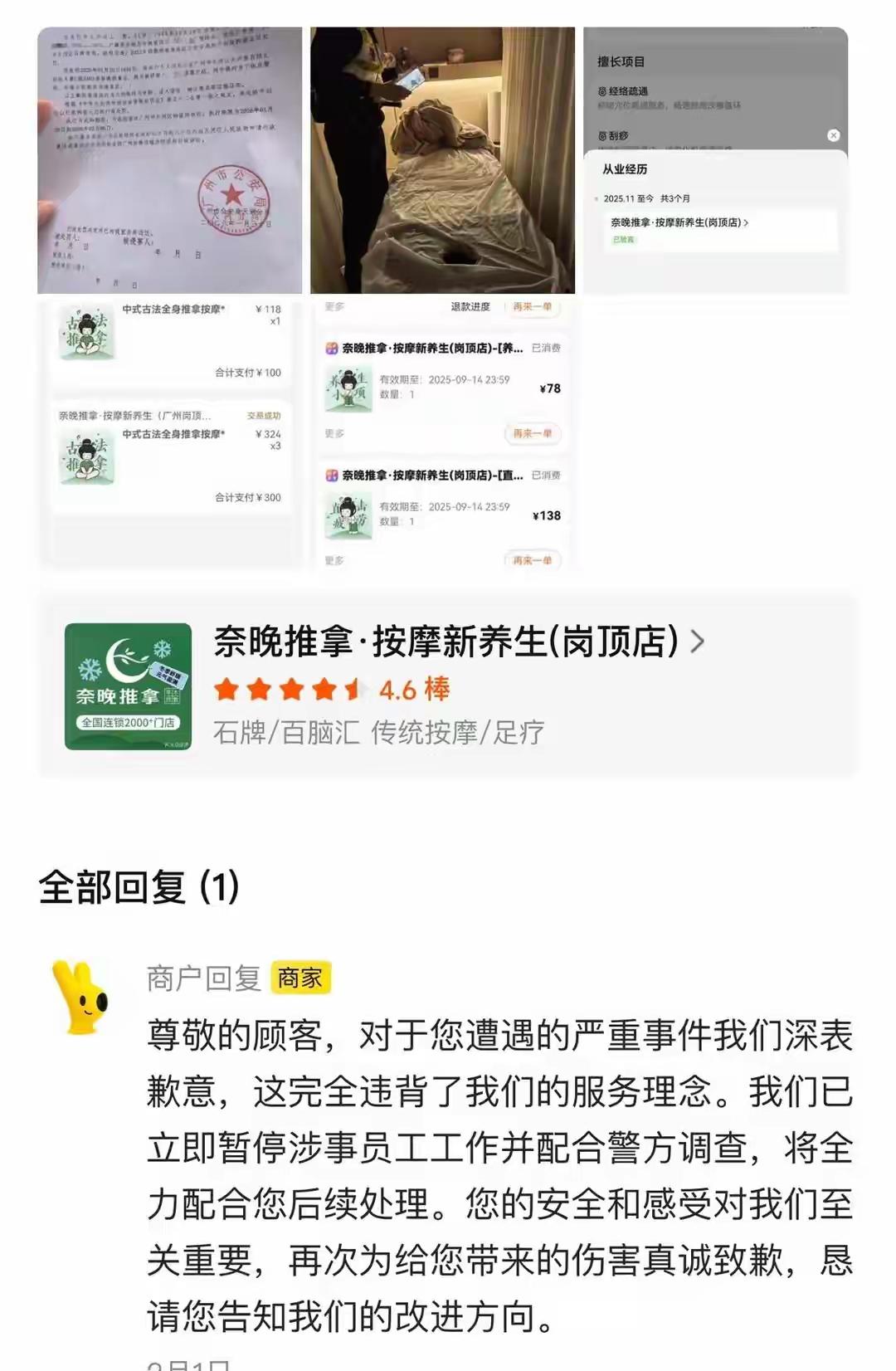广州天河惊现按摩黑手!前科技师二次作案,连锁巨头竟用“免费体验”搪塞受害者,三千门店的安全漏洞谁来填平? 走进装修雅致的养生馆,谁曾想到舒缓筋骨的双手竟会化作侵犯的利爪。广州天河区奈晚推拿岗顶店的灯光柔和,却照不见一位二十岁女孩颤抖的绝望。当本该放松的脊背传来异样触感,一场噩梦在温言细语的包厢里悄然上演。 更令人脊背发凉的是,施害者刘某早已不是初犯。去年他在海珠区因同样行为被拘留五日,如今却换身工服潜入另一家连锁店。前科人员为何能畅通无阻入职?所谓背景审核难道只是贴在墙上的装饰?这不仅是某个技师的失德,更是整个行业用人防线的集体溃败。 女孩鼓起勇气报警后,等来的却是店铺轻飘飘的“补偿方案”——终身免费按摩。将受害之地包装成馈赠之礼,无异于在伤口撒盐。当侵犯被标上价码,当道歉沦为促销话术,我们看到的是一家企业价值观的彻底扭曲。 奈晚推拿官网挂着“服务千万家庭”的豪言,背后却是三十万员工管理的巨大黑洞。试工两天即作案,培训体系形同虚设;三千门店疯狂扩张,监管脚步踉跄难及。当规模成为遮羞布,安全便成了最先被牺牲的代价。 翻看评论区,“不自爱”“活该”等指责竟获点赞。当受害者反遭舆论二次伤害,我们是否该反思:为何总有人急于为罪恶寻找借口?对安全的渴求从来不是过错,错的是那些利用信任践踏底线的手。 从美容院到理疗馆,身体接触类服务始终游走在监管灰色地带。国家尚未建立从业人员黑名单共享机制,让刘某之辈得以流窜作案。倘若连最基本的前科筛查都依赖顾客自行报警揭露,所谓行业标准岂非一纸空谈? 女孩仍在等待一个真正的道歉。而比个案更值得追问的是:在养生行业年产值破万亿的今天,我们何时才能筑起一道真正守护消费者的防火墙?当品牌忙着攻城略地时,是否该在每张按摩床旁安装看不见的“良心监控”? 这场维权拉锯战照见的,是普通人面对体系性疏忽时的无力,也是资本狂飙时代质量与速度的残酷失衡。或许只有当每个“偶然”事件都被迫扯出系统性的脓疮,改变才会真正开始。 按摩安全 维权困境 行业监管 (根据广州天河警方通报及奈晚推拿官方声明综合整理)