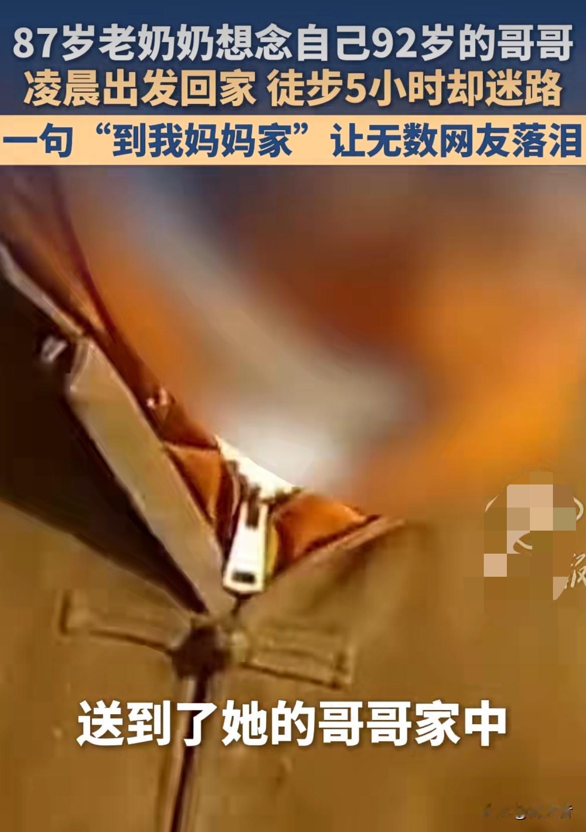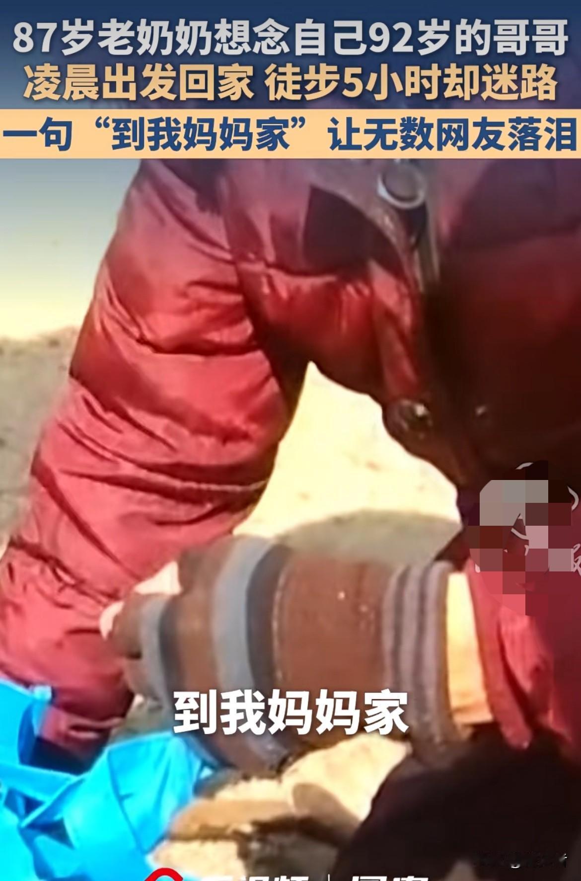 87岁老奶奶凌晨4点拄着拐杖出发,徒步5小时去见92岁哥哥,就为了那浓浓的亲情,结果却因道路改造迷路。一句“到我妈妈家”,戳中无数人泪点。87岁了还心心念念回娘家,这是对亲情最纯粹的渴望。想想春节,我们有车有各种便捷交通方式,却总找借口不回家。和老奶奶比起来,我们的困难根本不算啥。春节就是团圆的时候,别让亲情等太久,别让老人盼太久。