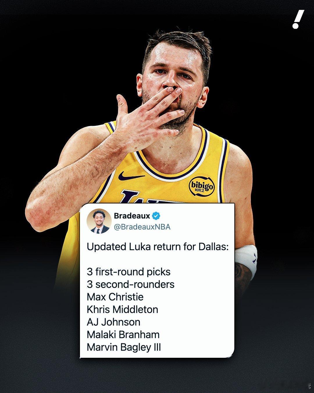 合着到最后,独行侠用东契奇换来了克里斯蒂、米德尔顿、AJ约翰逊、布拉纳姆、巴格利、 湖人29年首轮签、雷霆26年首轮签、勇士30年受保护首轮签、太阳26年次轮签、公牛27年次轮签、火箭29年次轮签,以及弗拉格…