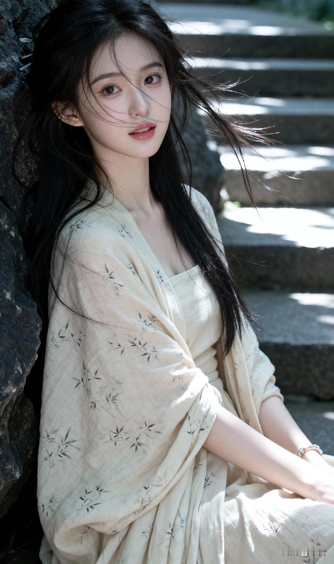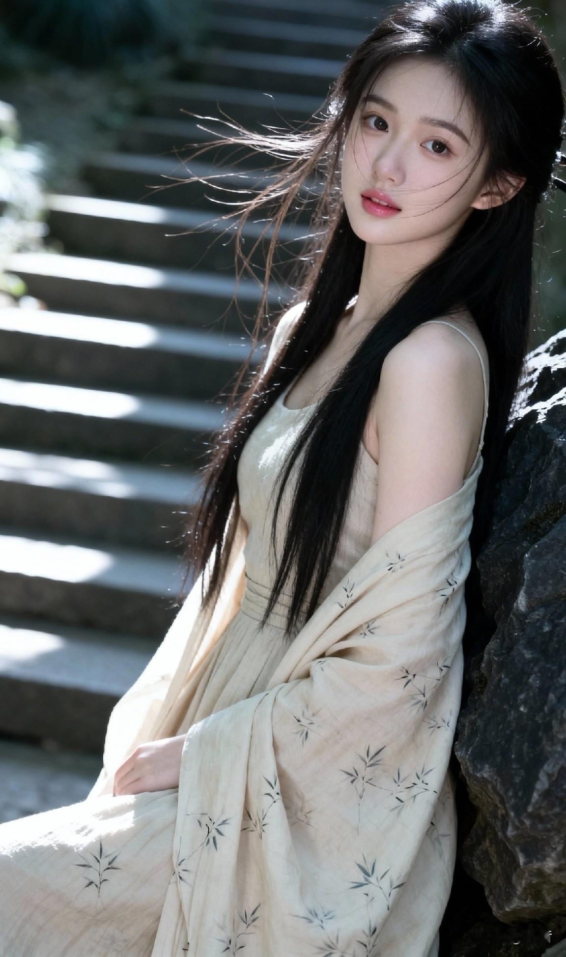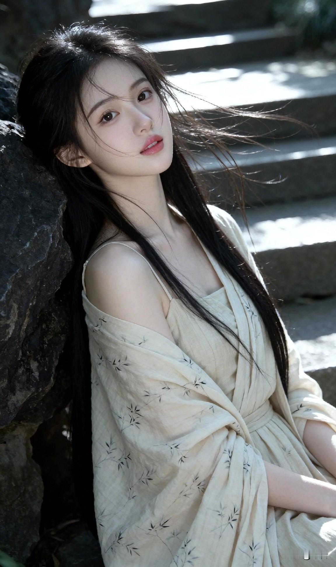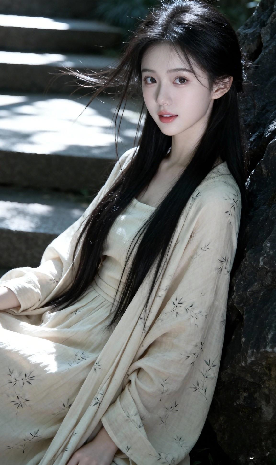 一袭素衣倚旧岩 分明是画中仙 偏又沾着人间的甜