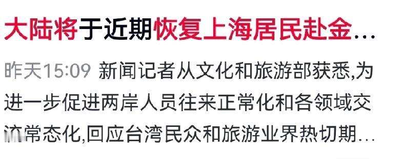 大陆近日宣布,将率先恢复上海居民赴金门、马祖旅游。国台办同步喊话民进党当局,停止阻挠两岸交流,尽快恢复大陆居民赴台旅游。 金门、马祖过去依托“小三通”与大陆游客,经济活力充沛。2019年前,每年超百万大陆游客到访,带动当地民宿、餐饮、文创等行业兴旺,民生富足。 然而2020年起,民进党当局以防疫为由中断“小三通”,导致金马地区迅速萧条,不少商家关门,民众生计受损。尽管民间多次呼吁恢复,台当局始终置之不理。 此次大陆选择上海作为试点,既因当地消费力较强,也着眼于后续带动长三角客源。两岸交流民心所向,唯有排除政治干扰,才能真正造福金马百姓。我们期待“小三通”全面恢复,更盼两岸携手前行,共创融合发展的未来。 对此你怎么看?